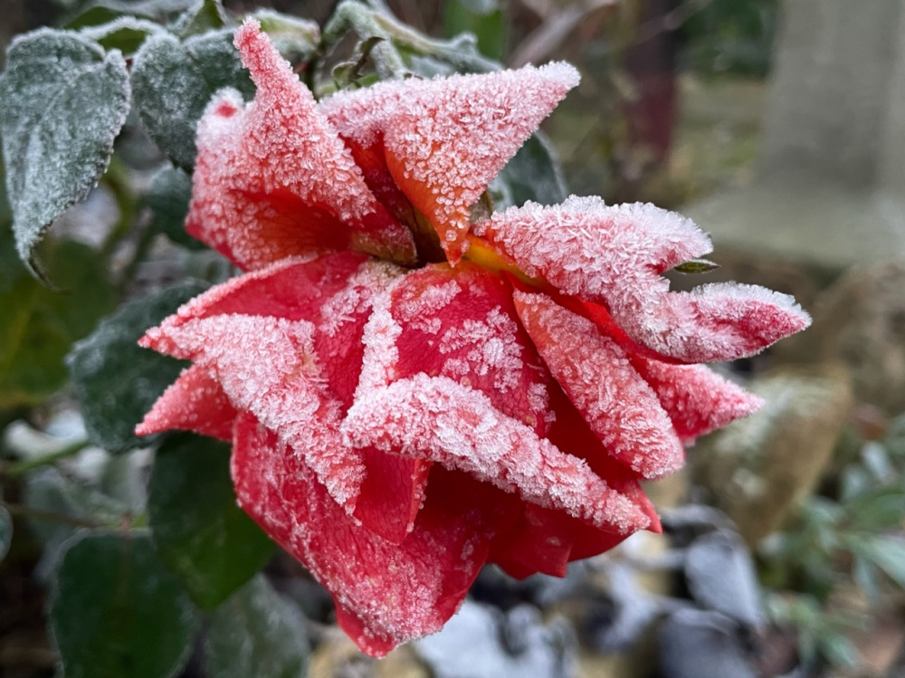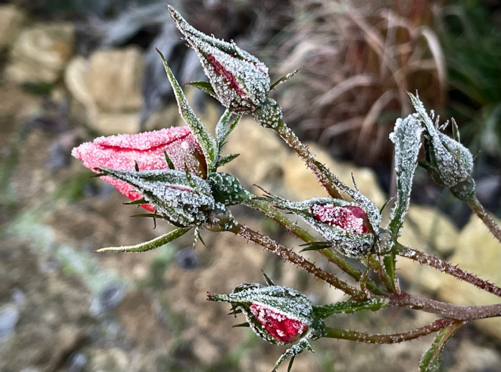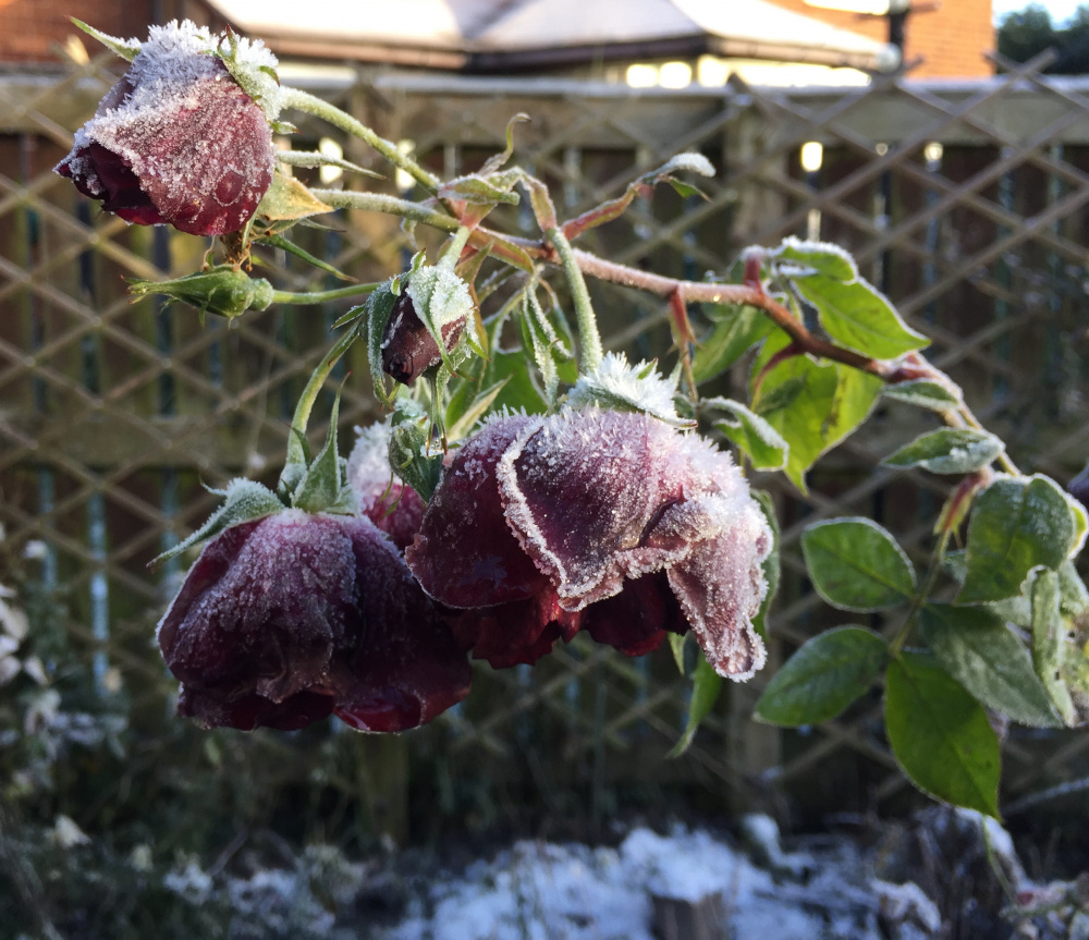 Gorgeous frost pics everyone. Shalott, eyes for you, angel eyes and syrie all have a few frosty buds, I'll try and get some pics. Heavy thick layer offrost here Last of the tulips getting stuffed in tomorrow, I know im late but have just been exhausted and until this week the summer bedding was still out!! Ive found loads of rotten vine weevil grubs though, not sure best way to get rid of them before spring and nematode season. Cant easily empty the soil out.