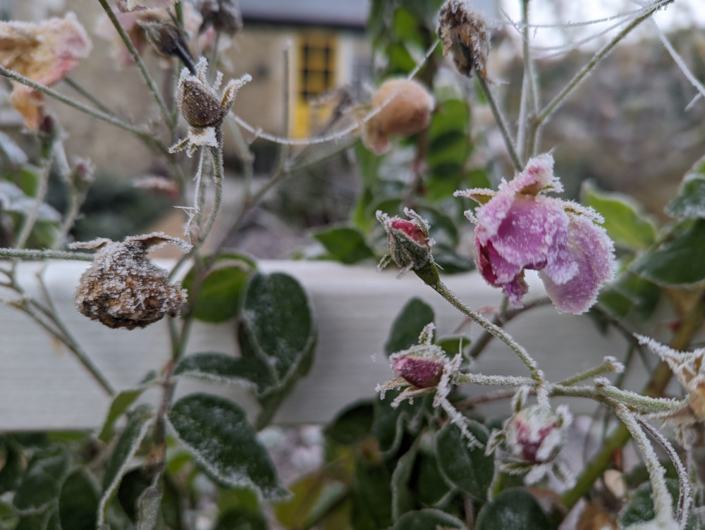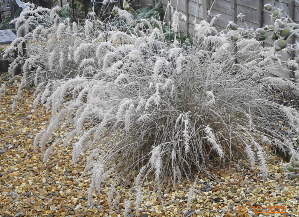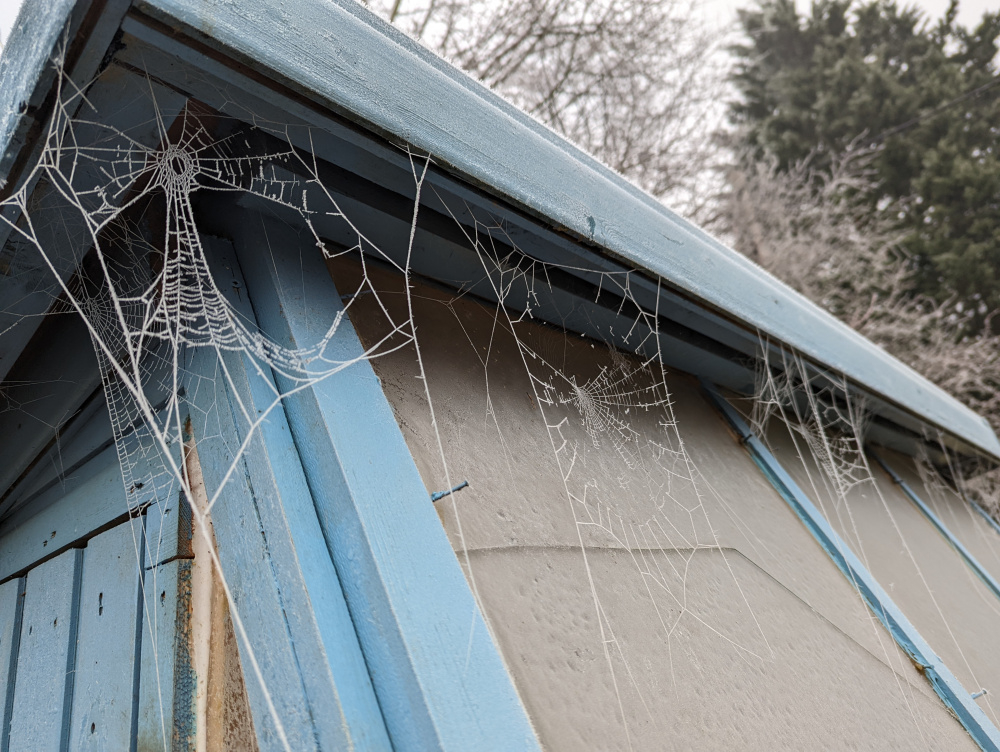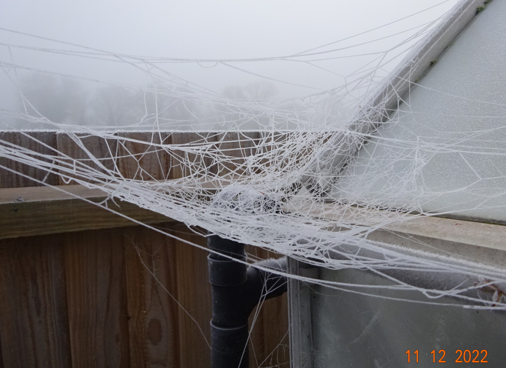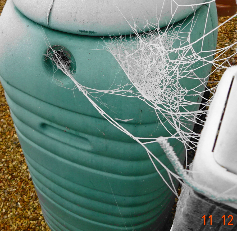 -6C last night, -3 at the moment.. 'Mutabilis' totally frozen today.. ..ghostly Pennisetum orientale.. I never knew I had so many spiders in this garden, pity the poor insects flying around here in summer..