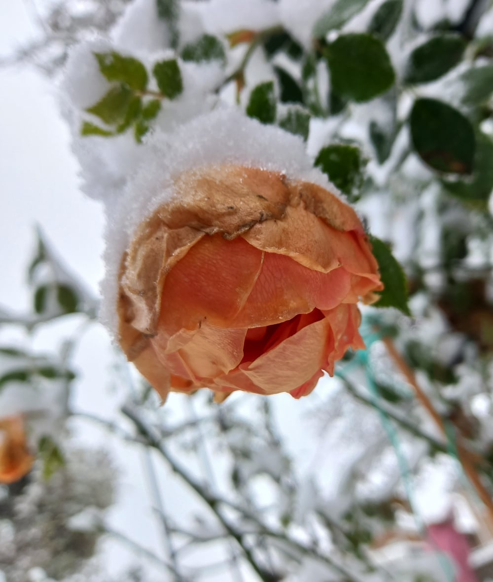 First little Dusting of snow here, just as well im still planting the last few bulbs in pots!! I brought bare root rosa Sophie Rochas on a whim as lovely serrated petals and on sale. Never heard of it before, anyone have it? Catalogue pic;