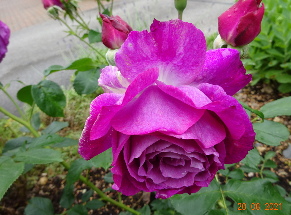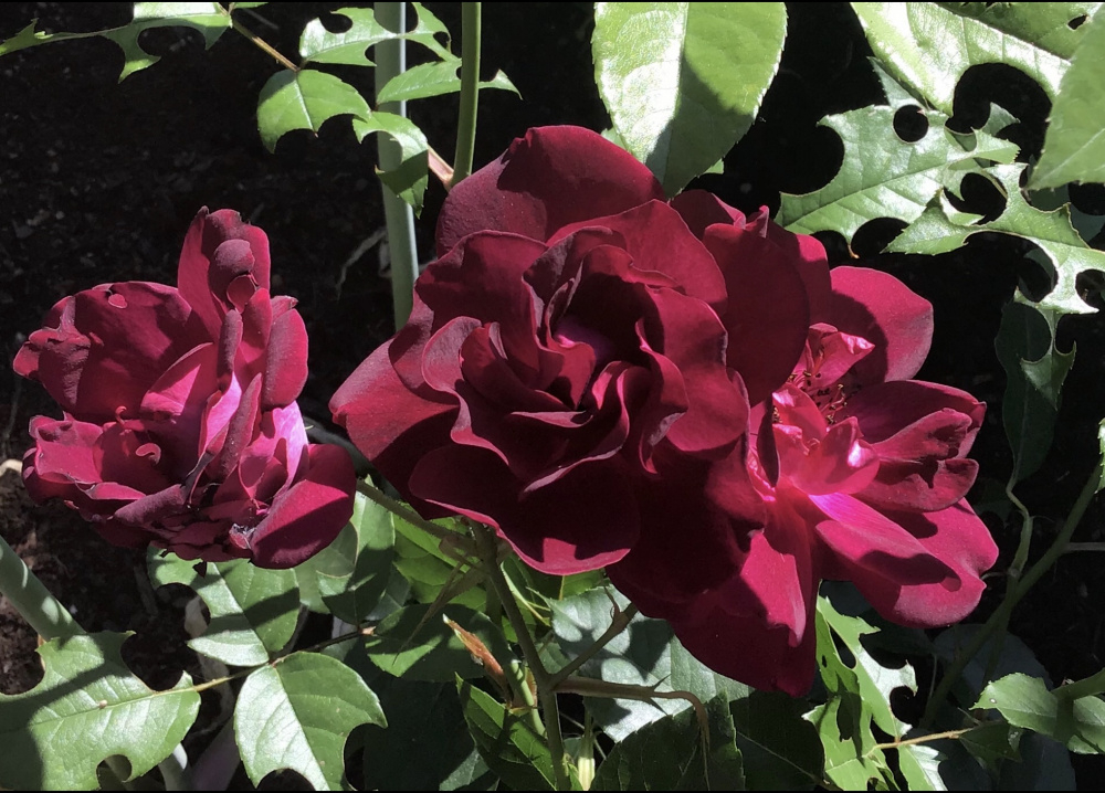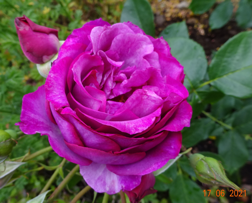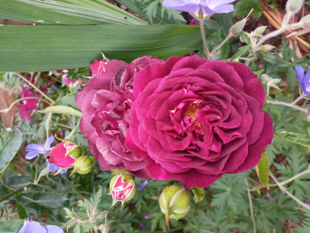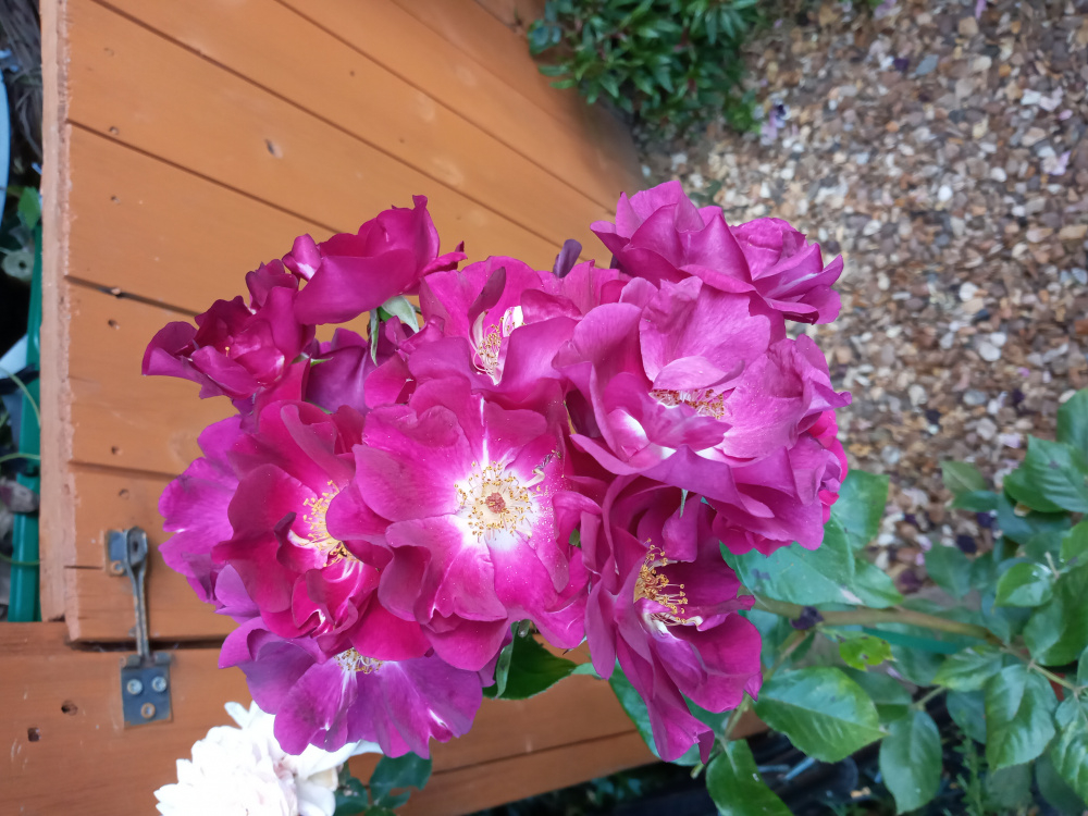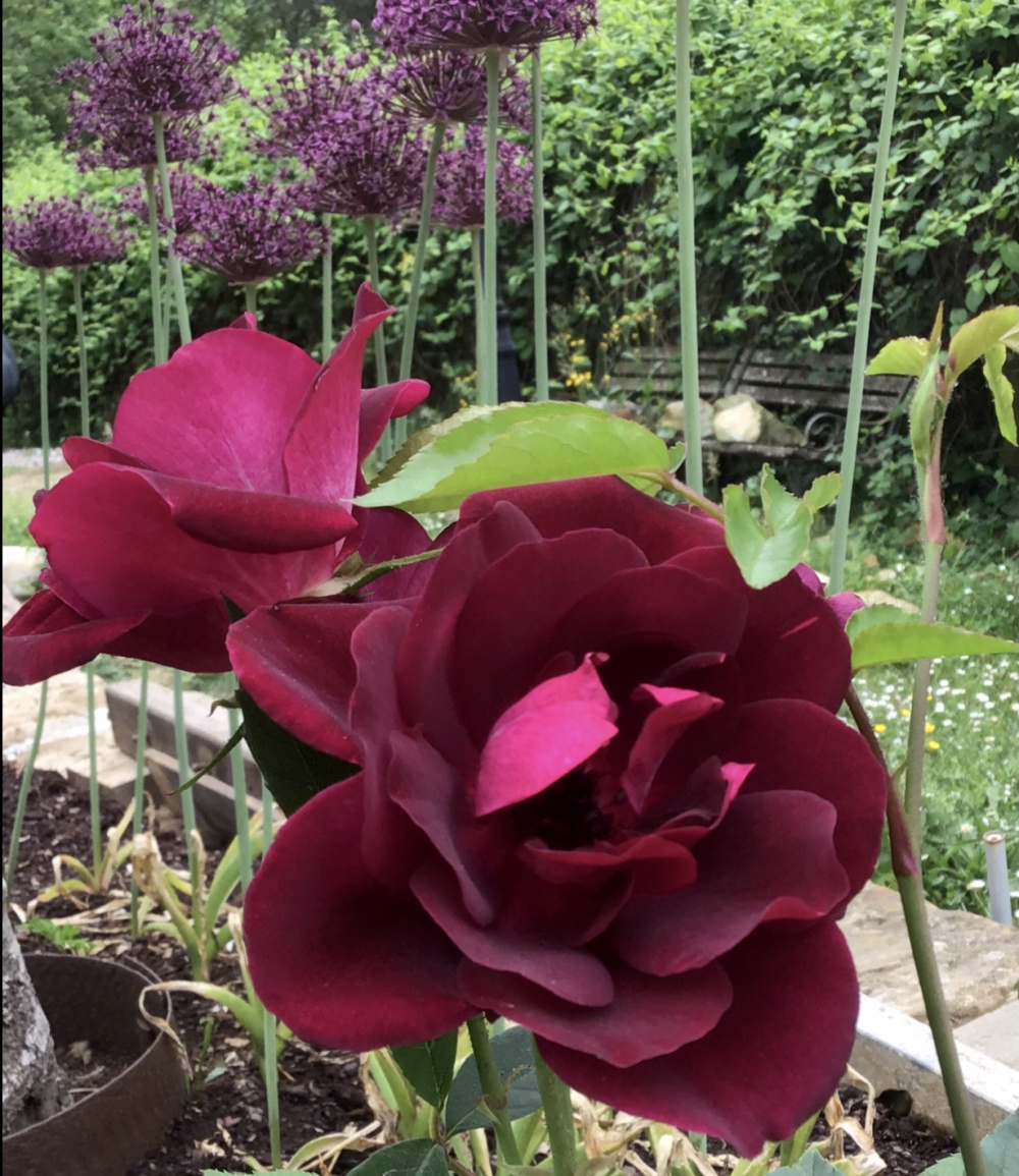 So here’s a rose I also no longer have. Large, semi-double blooms of a rich burgundy colour which fades to lavender grey. No fragrance though.