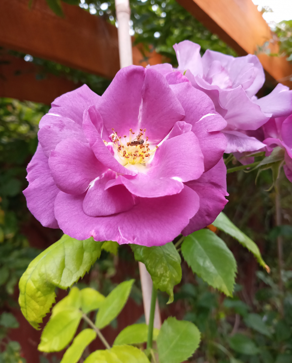 As you can see from the middle photo the leaf-cutter bees were fond of the foliage, but I don’t mind them. The reason I got rid of it was because it has a lanky growth habit, seemed to suffer from high leaf senescence and got blackspot - but few roses escape the latter here. I often thought about trying it as a standard, having seen a really good specimen on HMF that was much fuller and impactful grown that way.