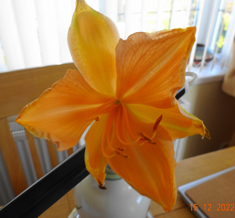 A touch of the Nollie temps here last night -8C.. I brought a Daylily stem indoors a few days ago and it opened..