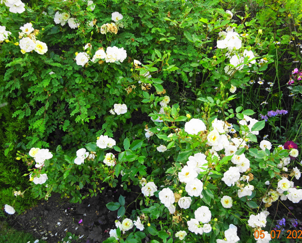 Blooms open yellow quickly changing to white, and rambles gently. I'm liking this rose very much, health seems to be exemplary too..
