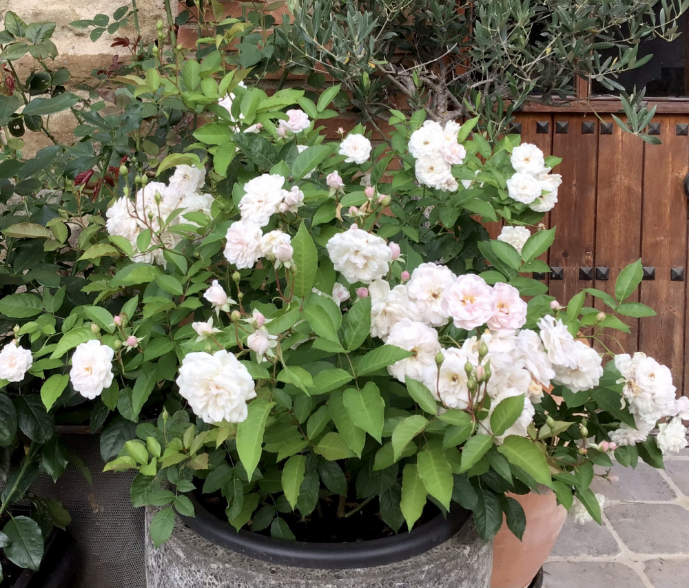 Here’s one that rapidly became a favourite of mine, not a ‘shouty’ rose, but I have two in pots either side of my front door and love them. If you would like a Blush Noisette but don’t have the space, try this one..