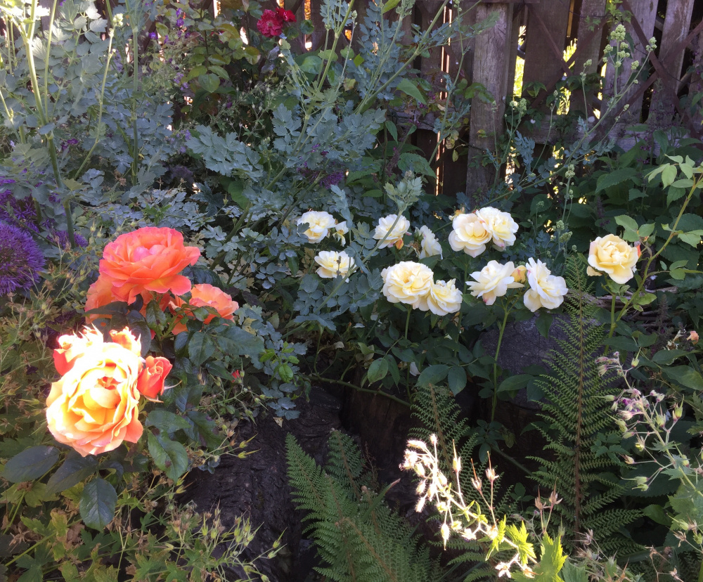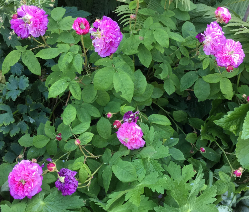 Two good summer flowering roses, Alba Maxima and Tuscany