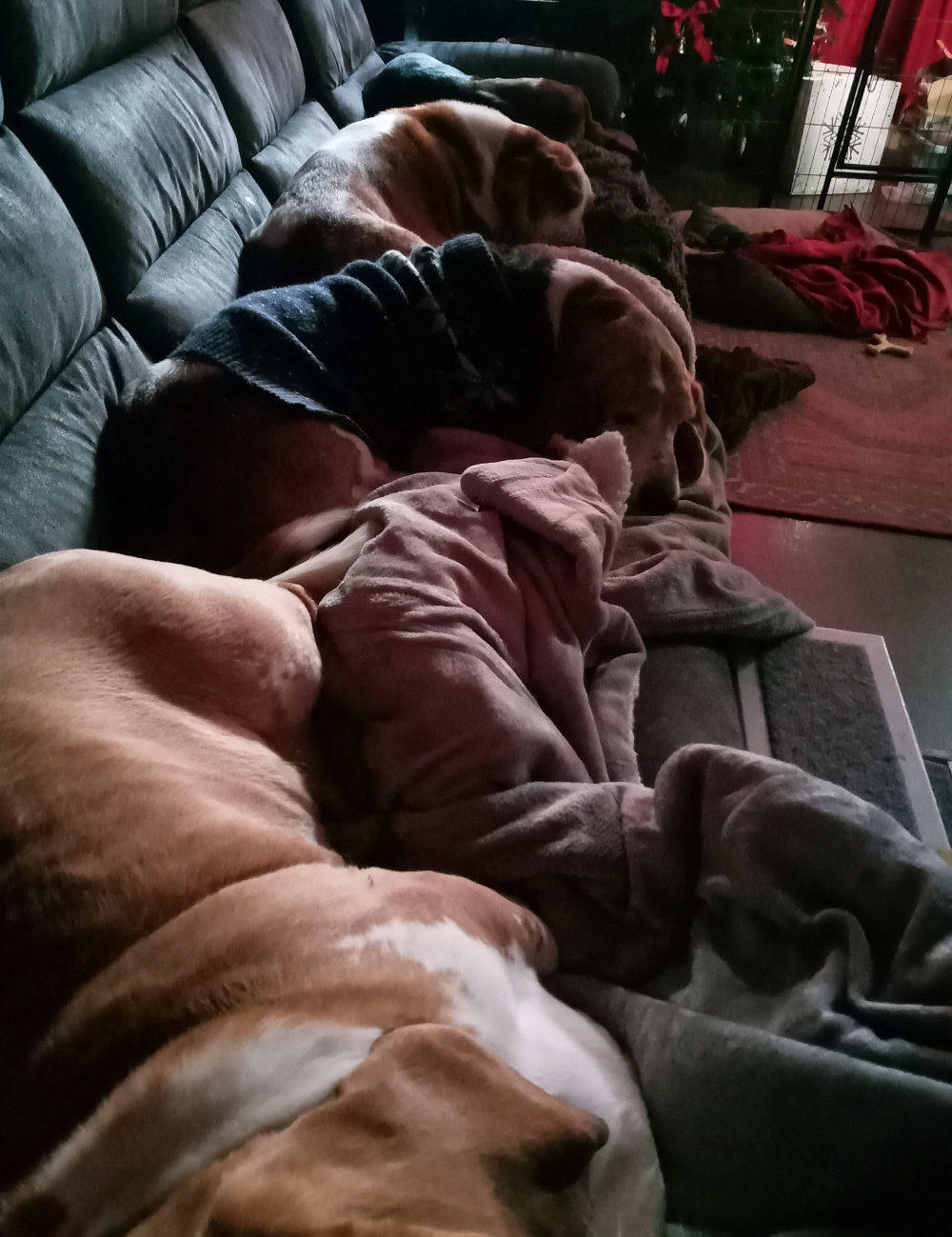Merry Christmas Rose lovers! Thank you for sharing your collections and advice with us! Heres all 4 hounds on the sofa with me. Yes, Our oldie is wearing a festive jumper... she feels the cold these days, so she loves her sweaters!