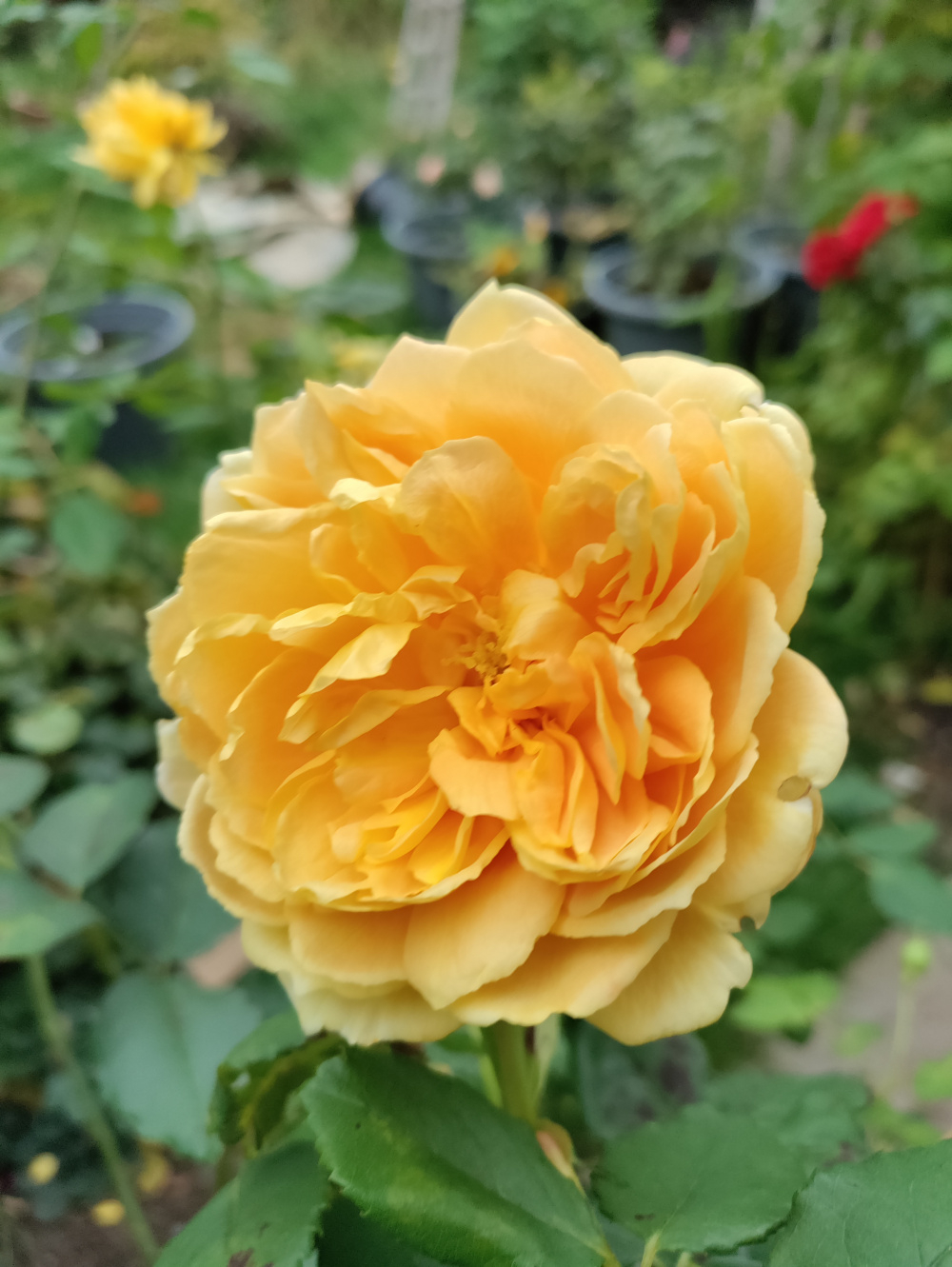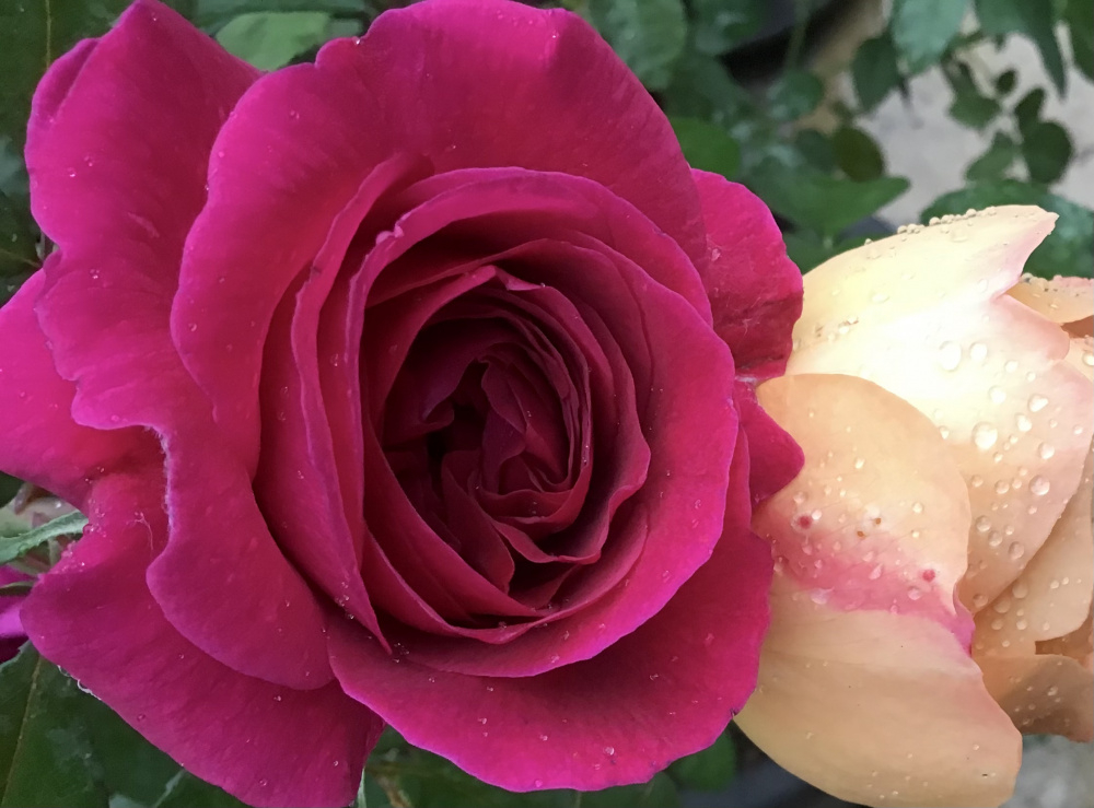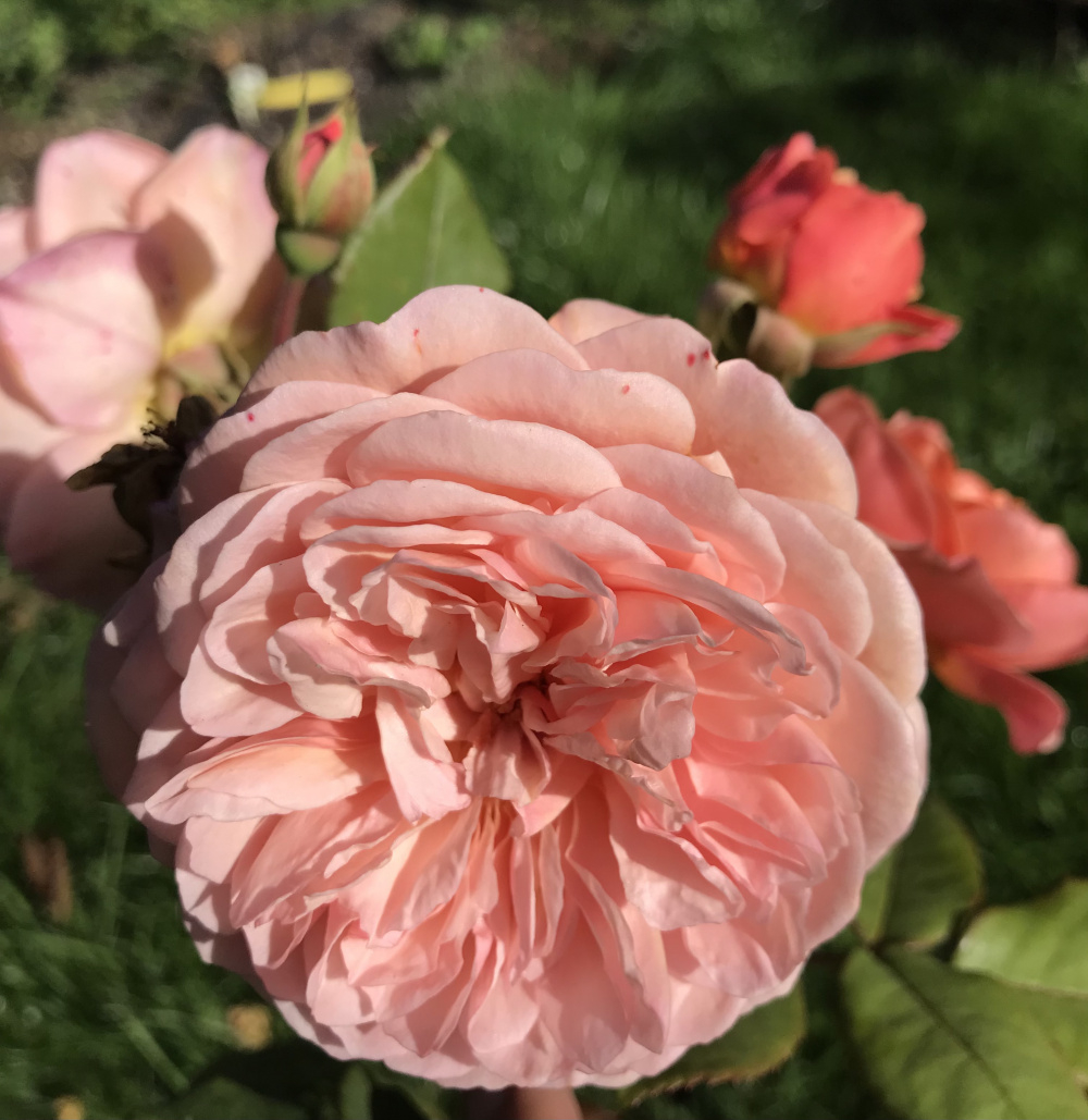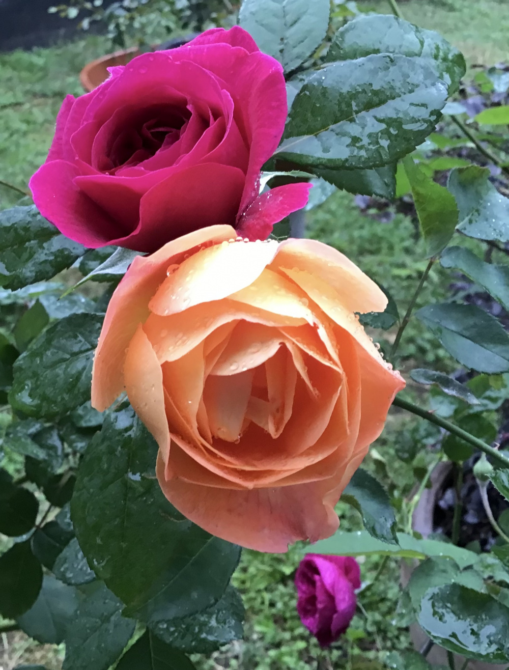 I was moving pots around and accidentally created this conjunction of William Shakespeare 2000 and Lady Emma Hamilton. It looks like WS is bleeding onto Lady Em: