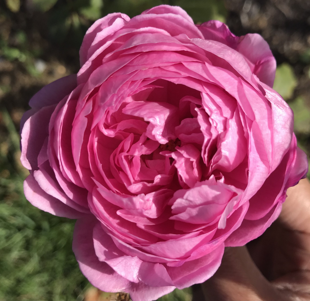 Souvenir de Marcel Proust has half a dozen big blooms on it, not so full as earlier in the season but this one is a full 5” across: