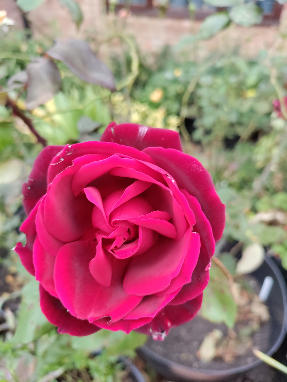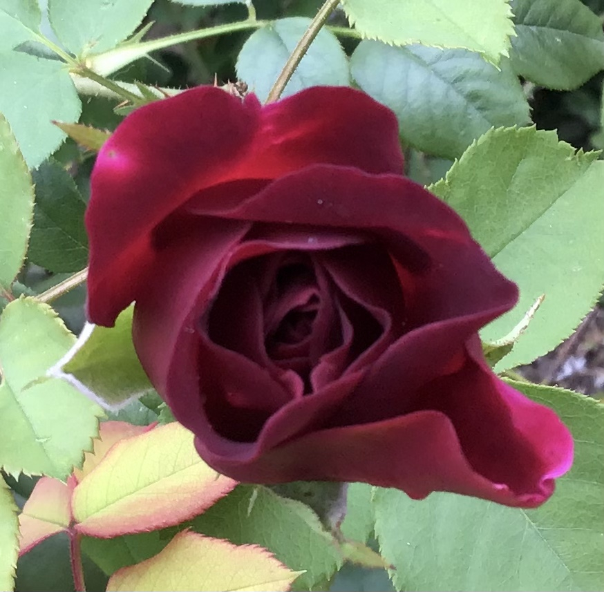 William Shakespeare 2000 is the first of my three dark DAs with a fully opened bloom. A floppier habit, so far (it’s new) and smaller blooms than Munstead Wood and The Prince but the fragrance is outstanding, the best of the three: