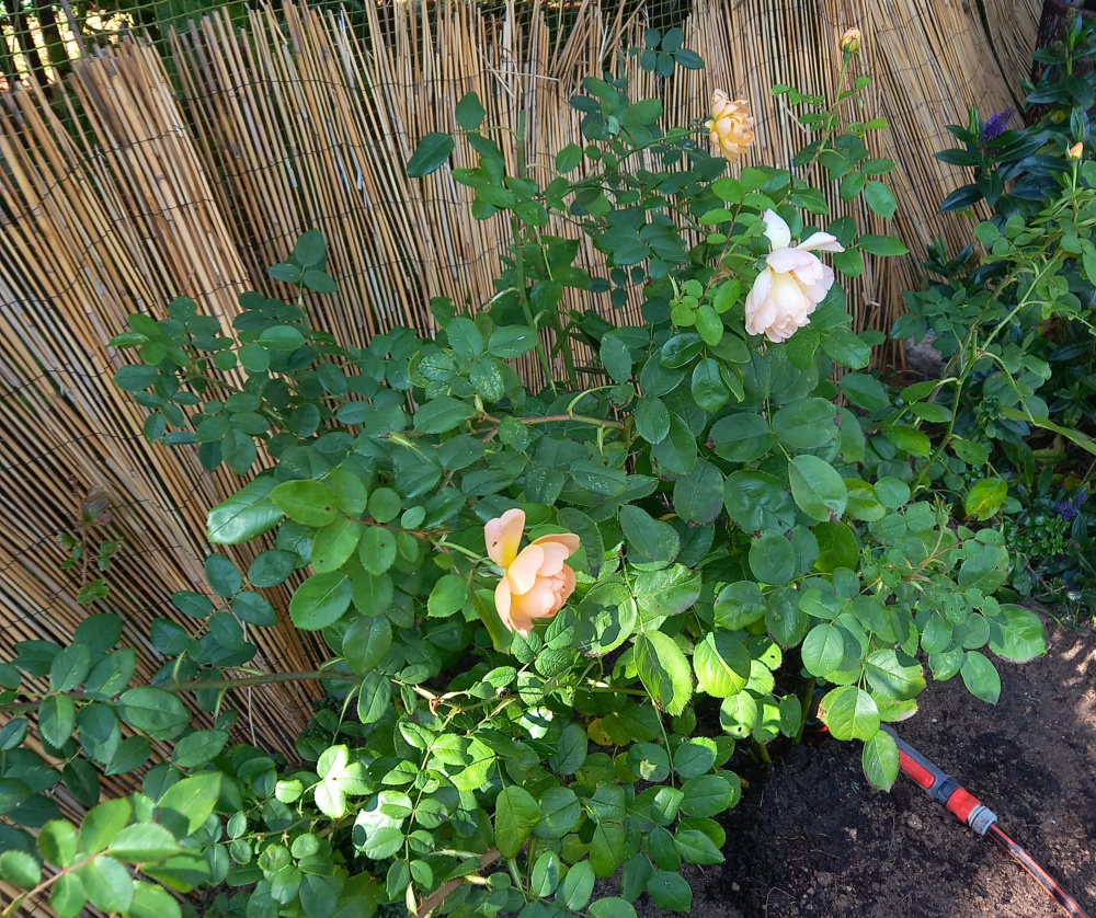 Was waiting for the fence to be replaced to put The Lark Ascending in the ground but couldn't wait any longer- it was huge and heavy and outgrowing the pot. I have put it where it should get 4-5hours of direct sunlight and a little dappled sunlight afterwards- hope that's enough.