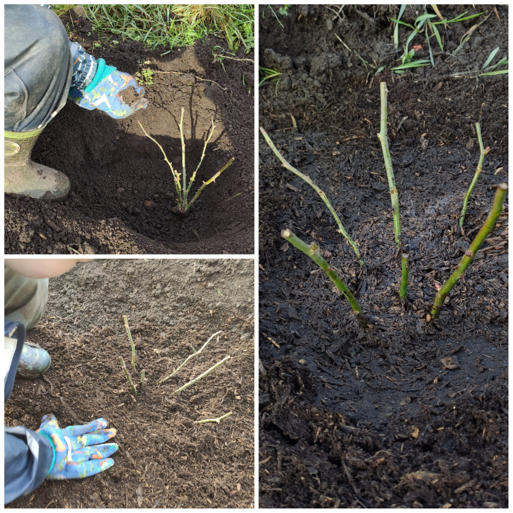 Had some brighter weather today so I went out to the allotment with the boys to plant Graham Thomas.