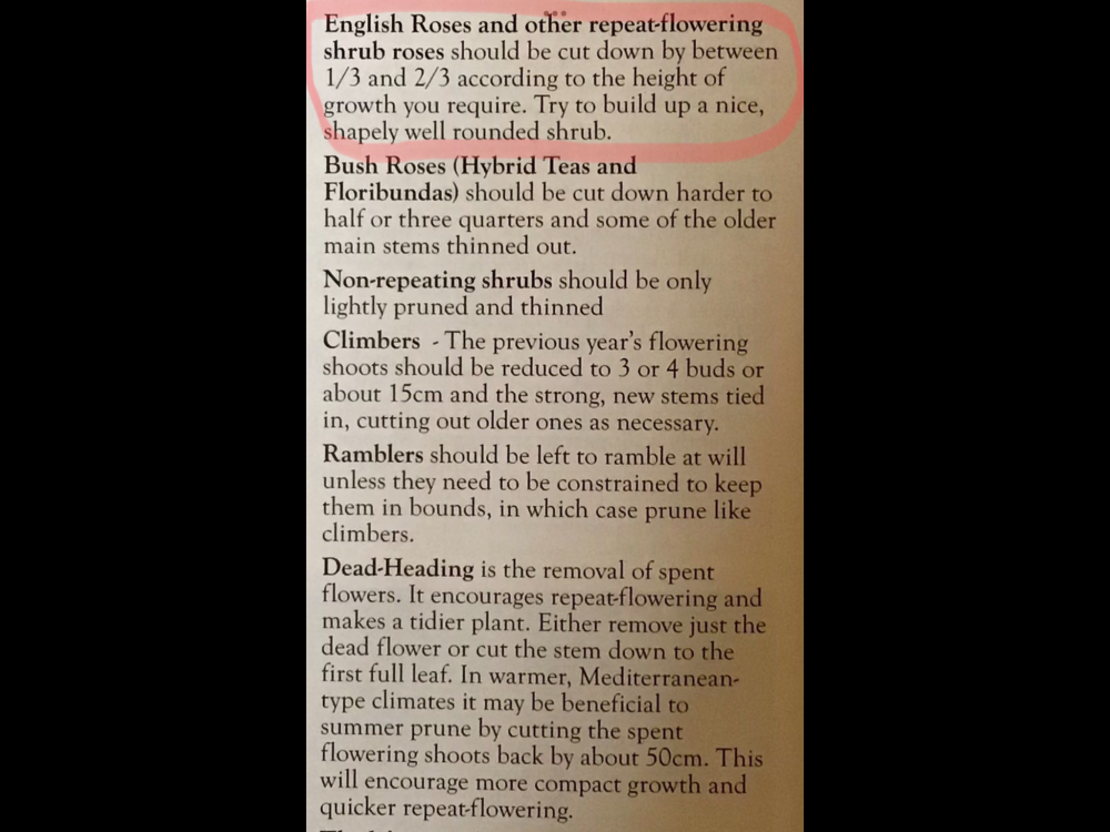 Also their advice - whichever version you choose - applies to English shrub roses, not floribundas or HTs (which they also sell) that benefit from harder pruning still, so check your varieties!
