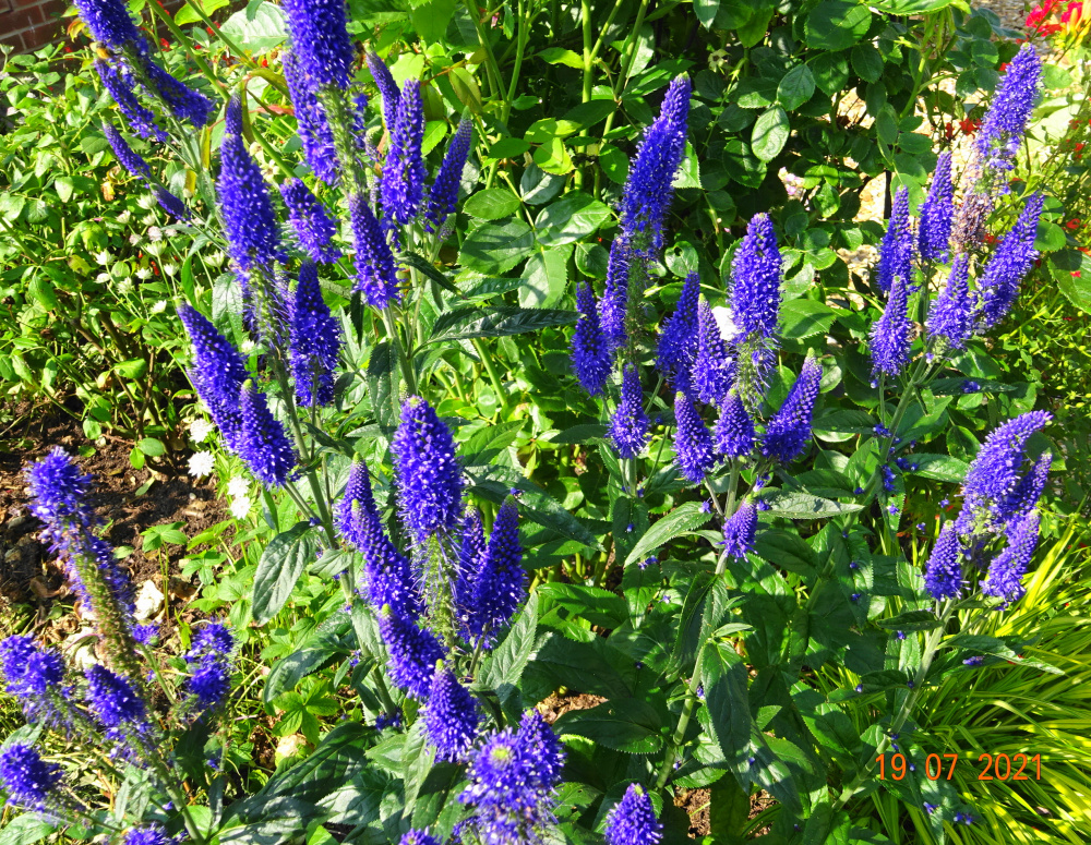 Veronica 'Marietta' offers a dark, rich blue.. not too tall..