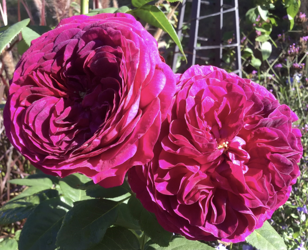 Sorry, I thought the labels were legible, but obviously not after reducing the photo in size. I’ve finally joined the Ghislaine de Feligonde team, which is the thornless rose; the other one is Midsummer Night’s Dream.