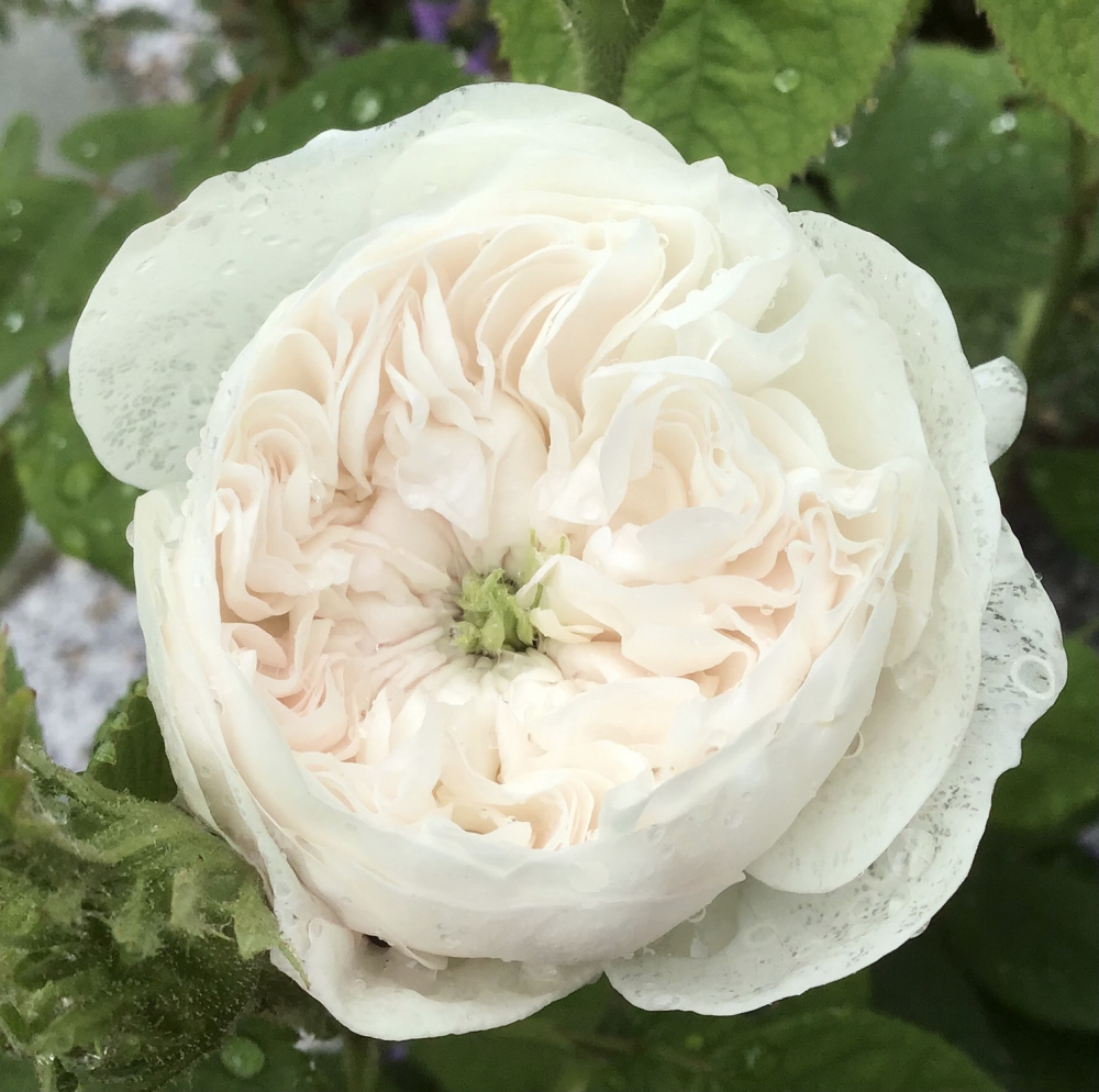 I recall you said Botzaris was better than Mme. Hardy Marlorena. Certainly looks like it, the Madam had disappointing scent for me, just vaguely grassy. I probably didn’t give it enough time to mature and toughen up but the delicate petals went translucent in rain, you can see it starting to happen here after only a light shower: