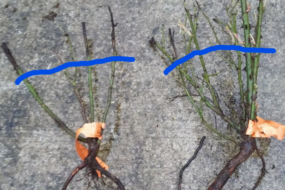 @Liriodendron Yeah, they're ok, looking good... nothing much to worry about at all just a bit of tlc.. there are several options but the simplest is to do this.. Don't worry about where you cut too much, just above a bud if you can see one, or not it's not a problem.. new roses benefit from a bit of pruning like this, it won't hurt them..