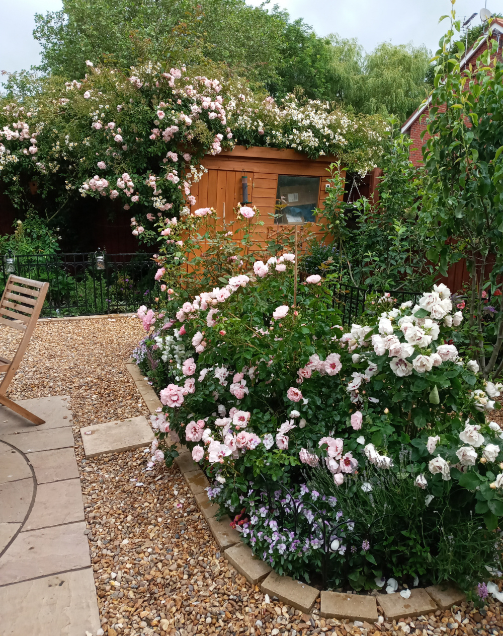 We have rather too much garden, to be honest; I love gardening and spend as much time as possible doing it, but I'm getting older and creakier. It's a third of an acre in total, and was all grass apart from some trees at the back when we moved here three years ago. We now have fruit trees in a meadow area behind the house, which is not too labour-intensive. I can't stop digging out borders in the front though.