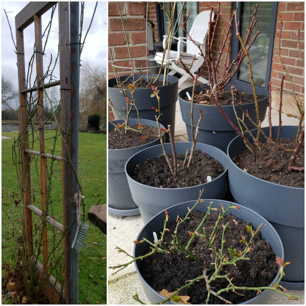 Defoliation etc done on Strawberry Hill. I may revisit this and pull some canes more horizontal but I got cold. It always amazes me how insignificant roses become in winter, that trellis and birdbath brush disappeared with the foliage, now the rose has. BTW trellis is now level and straight but washingline support isn't. On balance this looks better from the house. Maybe sometime I'll reconstruct a whole structure for both rose (roses?) and washing line. This was all a bit of a first lockdown experiment.