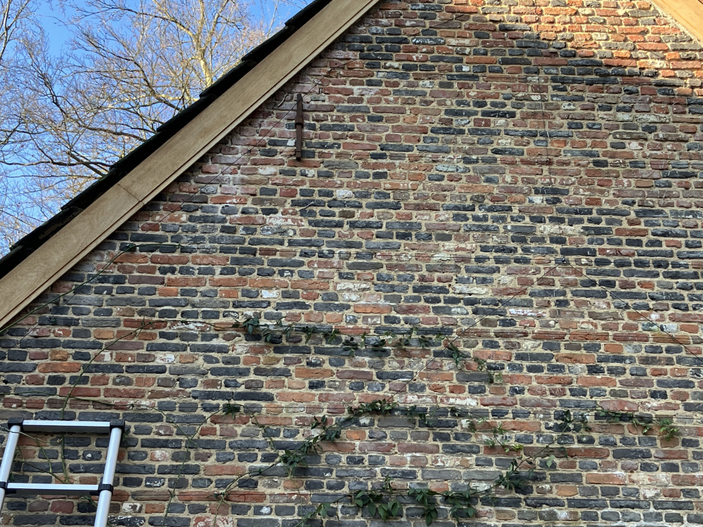 @Imprevu ..that's a high wall, I don't expect you will be wanting your rose to get much taller than that..?