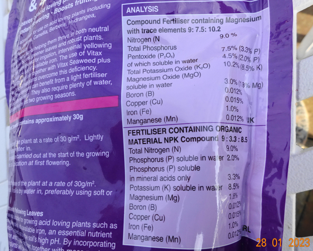@Marlorena that fertilizer bag looks different to the one WAMS bought.. with micronutrients etc and ericaceous.. I guess that would be good for roses in pots especially as the tap water would make it more alkaline..
