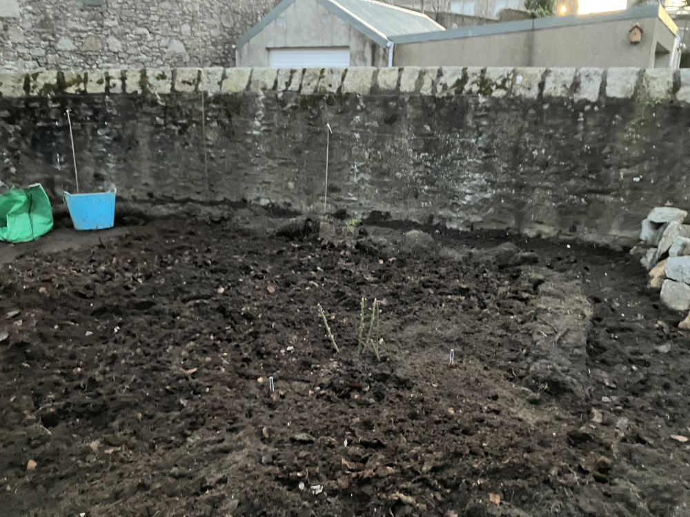 You'll note the soil levels rising - after digging out and sifting through 10 barrow loads of compost - I've decided just to dig the soil to open it up and then apply the compost as a 6" mulch. It will get dug in as I begin to plant out, but in the meantime it will act as a weed suppressant.