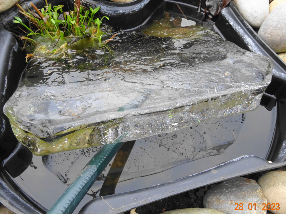 Wow, that's a slab of ice @Marlorena, you must have had some good winter weather recently. Here it has been mild all week after heavy frosts everyday the previous week. There was a surprise frost this morning, nothing looked frozen but when I inattentively went to sweep the water out the bird bath I realised it was solid