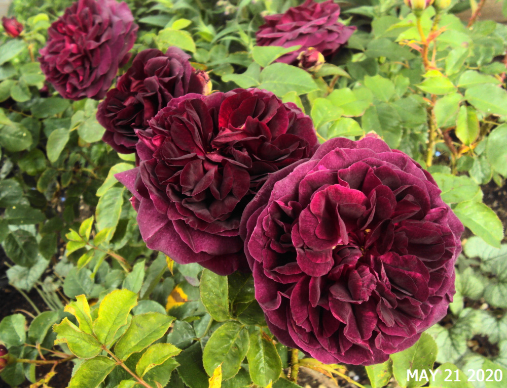 Does get blackspot, but dosent stop flowers which are very pretty and longlasting. Velvety dark red.