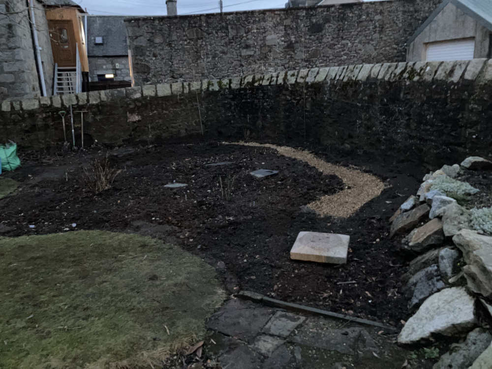 If the weather stays dry then I hope to have the main bed, path and associated compost mulch finished over the weekend.