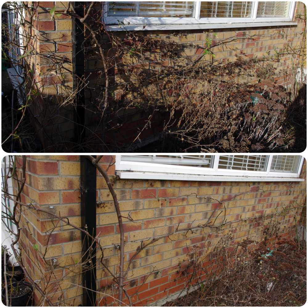 Ive lowered the bottom cane in the picture above from the top wire to the bottom and done a weird criss cross to try and get something going along the top. Been waiting for years for some new canes to tie in there, realised I’ll have to just work with what I’ve got.