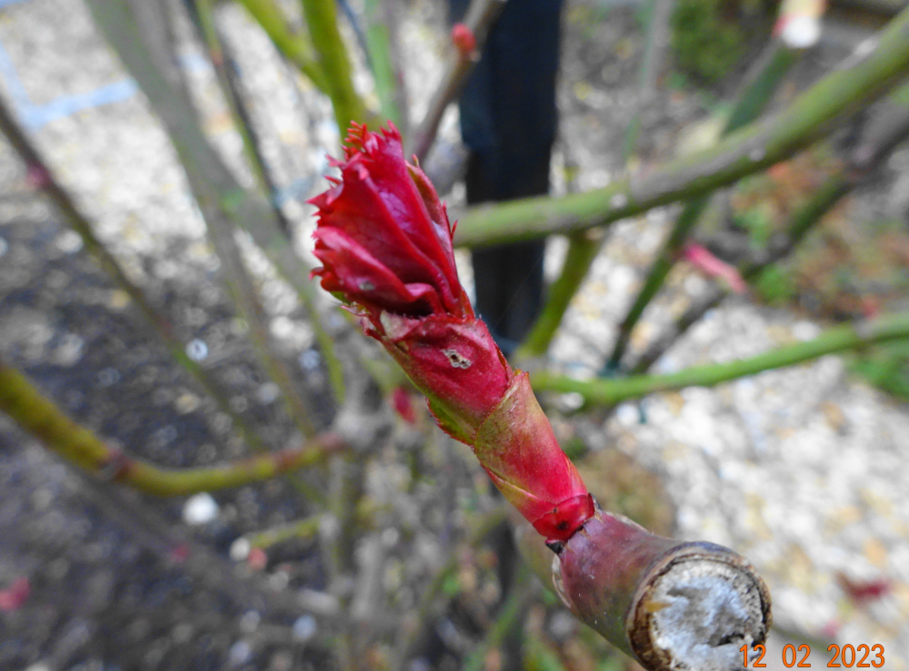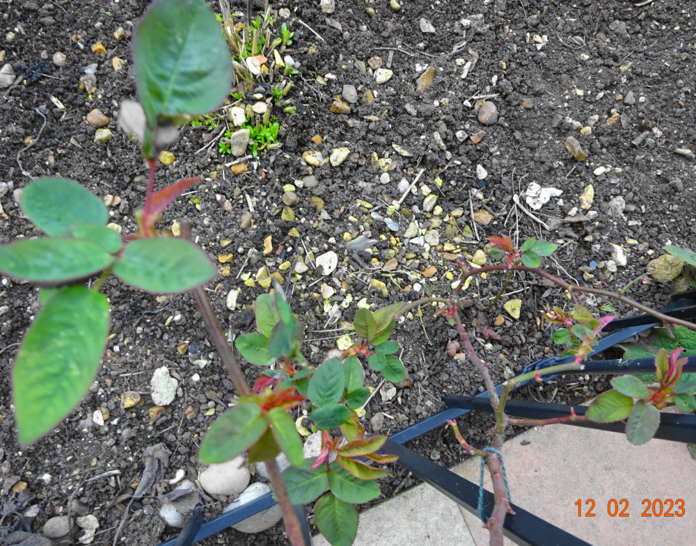'Kathleen Harrop' has the most foliage on any of mine at the moment.. despite being in the coldest, shadiest part of the garden.. ..electric red shoot on 'Wild Rover'..