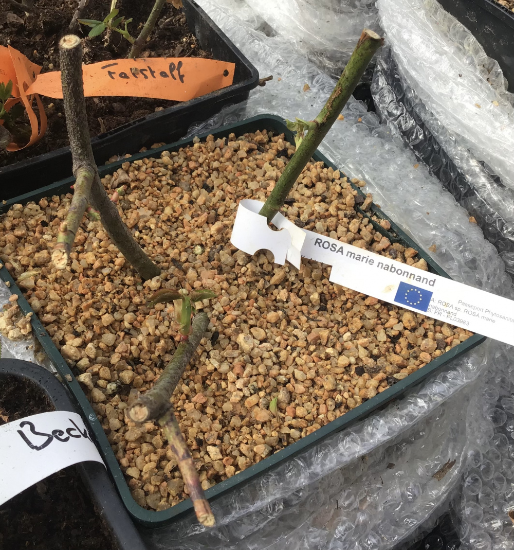 New roses in the poly are doing well. I know it’s still February but interesting to see different growth rates. Racing ahead are Crépuscle, Roald Dahl and Violet Hood, most others are well on their way. Two remain stubbornly slow..