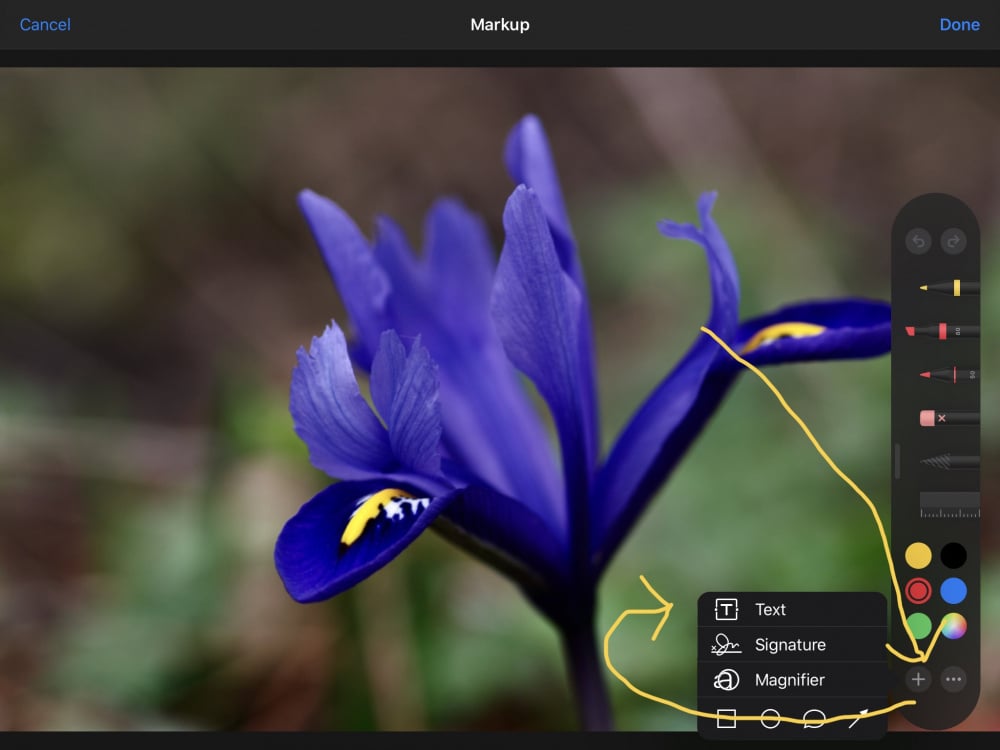 Cheers @Mr. Vine Eye, beat me to it! @Songbird-2 My iPad is older and the mark-up pen symbol sits alongside the triple dot but otherwise works exactly the same. Double click on the text box that appears onscreen to edit.