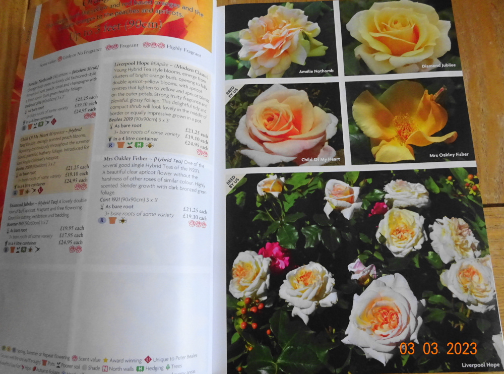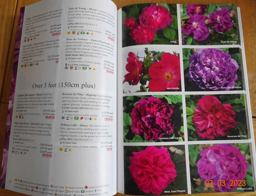 I do like the way Beales compile their catalogue too. By rose type, then by colour, then by height. Each rose fully described and its characteristics and suitability itemised with icons.