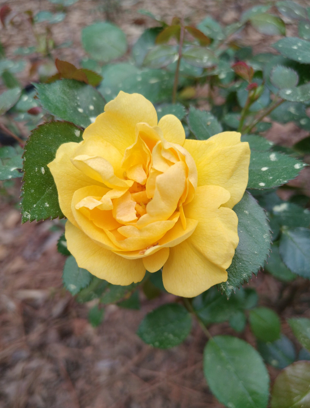 Quite surprised to discover Julia Child's first flower of the season today! Don't worry about the spotty leaves - it's pine pollen season in Georgia. You can see clouds of it coming off the trees when the wind blows.