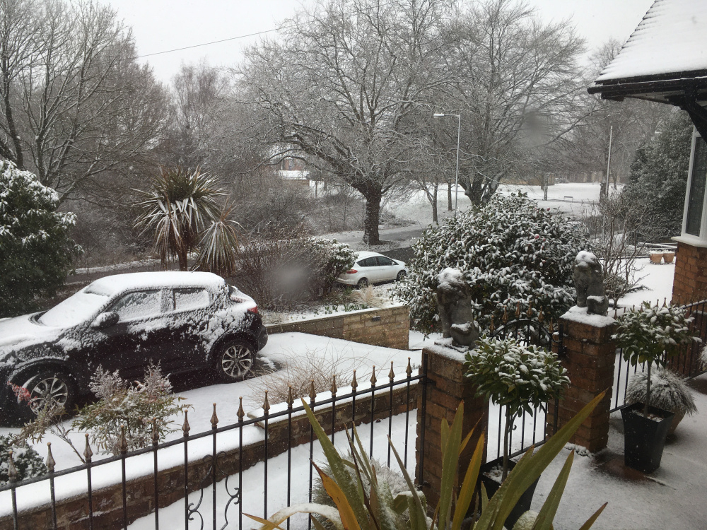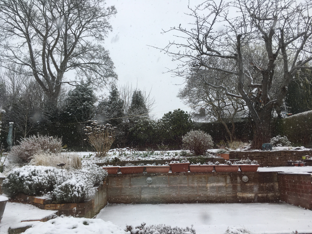 All gardens look good under a layer of snow, a great equalizer. couple of quick snaps thro the windows I'm not going out there... I'm trapped anyway at the top of the ski slope... Front Rear