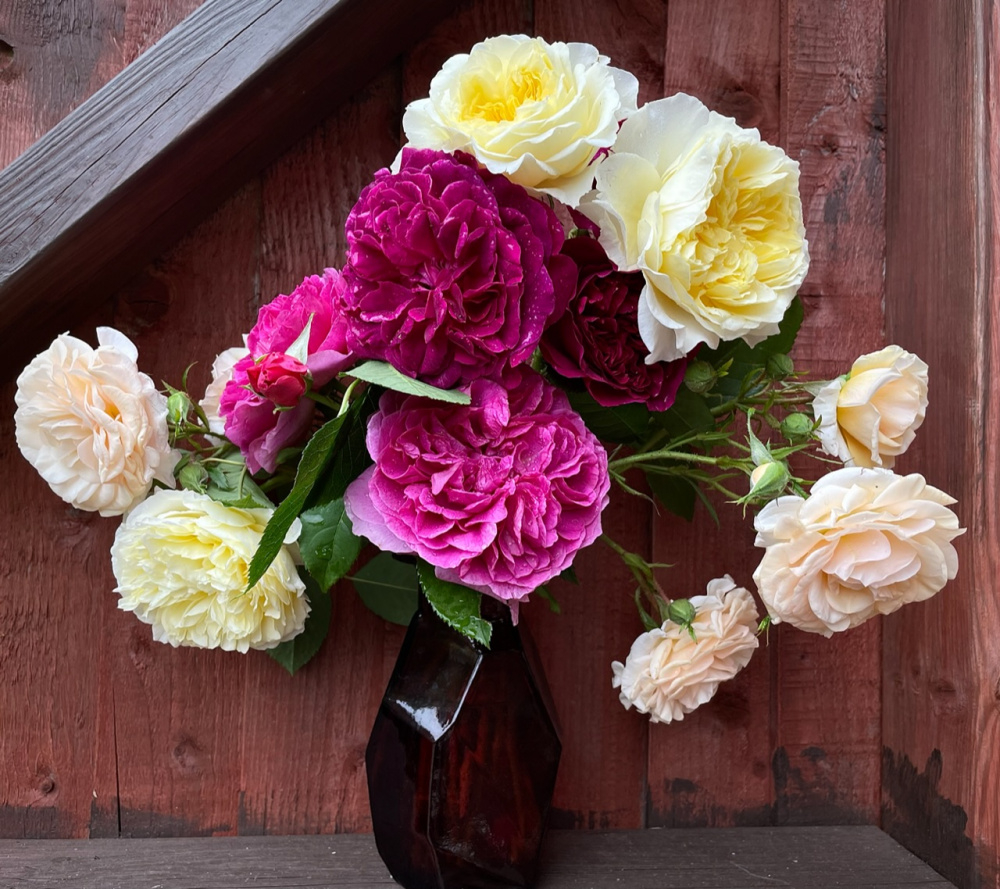 I got William and Catherine from my rose fairy right at the end of the season. Not the nicest fragrance but still quite a charming rose. Shattered pretty quickly but it *is* planted in collie vs squirrel battle territory.