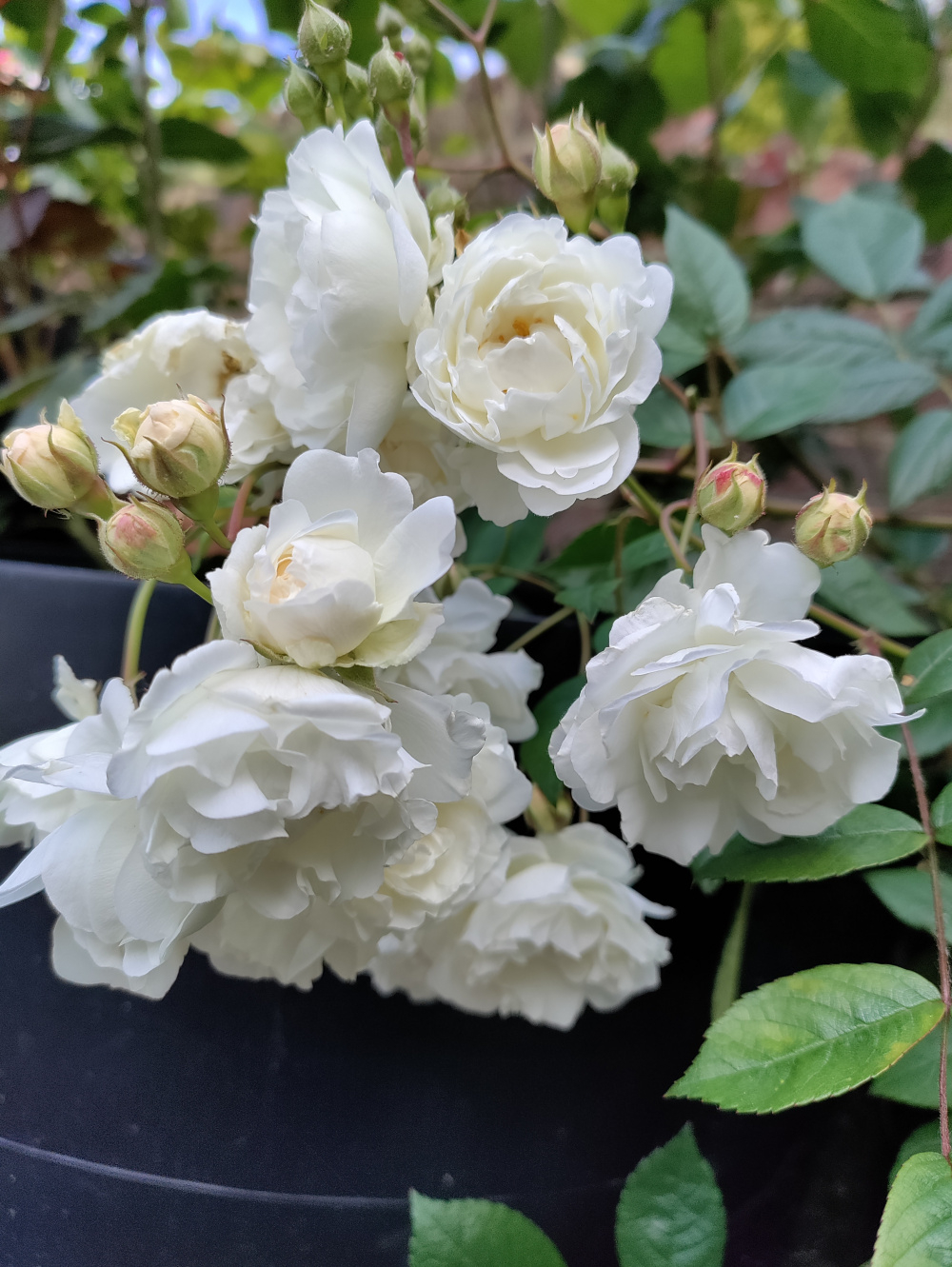I too have a few white roses, but being lazy, I never labelled them nor properly stored the photos. Susan Williams Ellis was much improved last year, though I was at the verge of giving it away after a poor performance the previous year. Jacqueline du Pre was a late addition last season. Katherina Zeimet, has a delicate fragrance, and nice bunches of tiny flowers. However, the petal edges did turn brown in the rain.