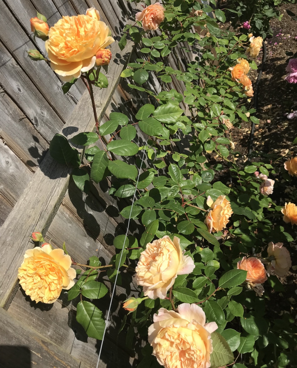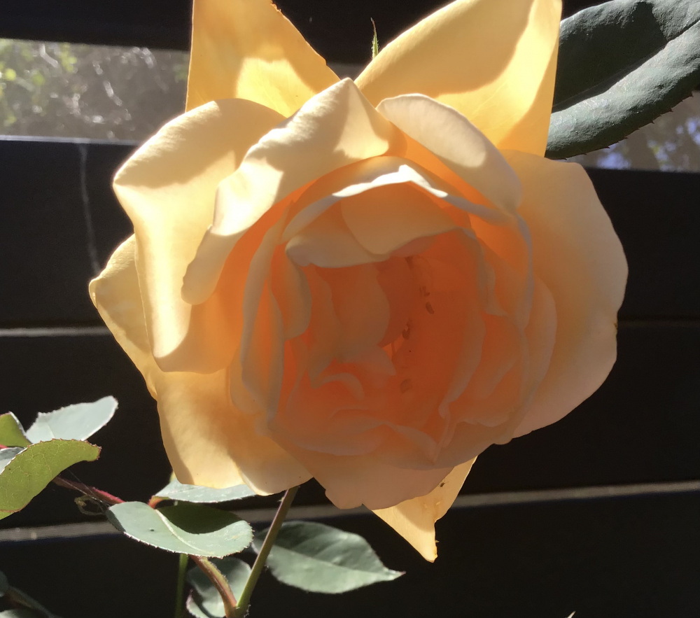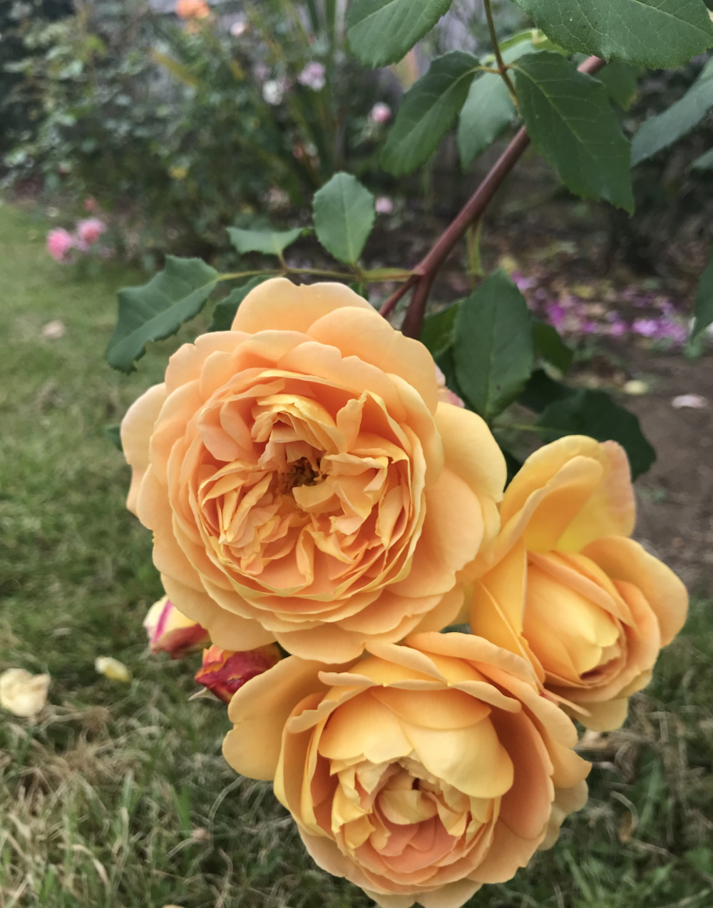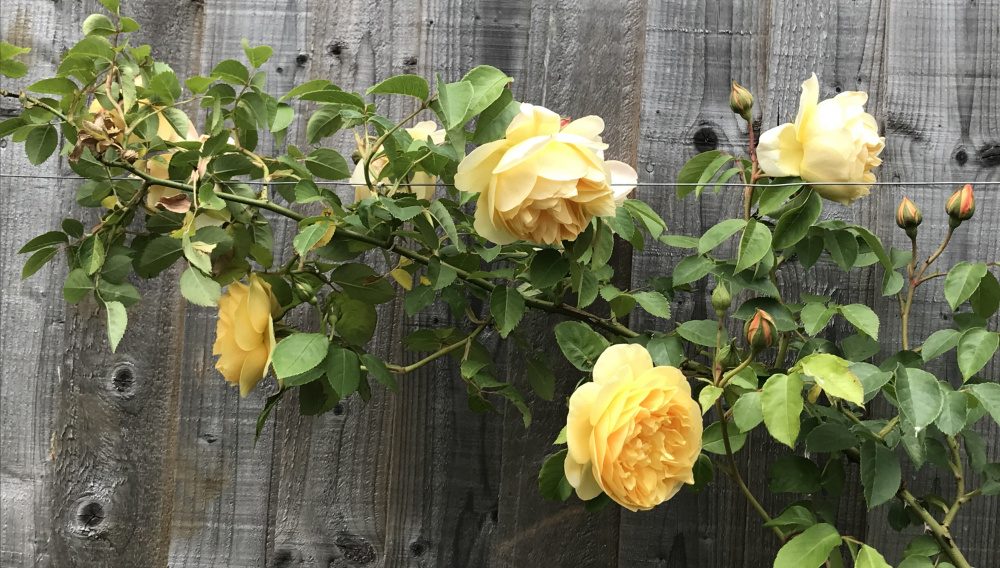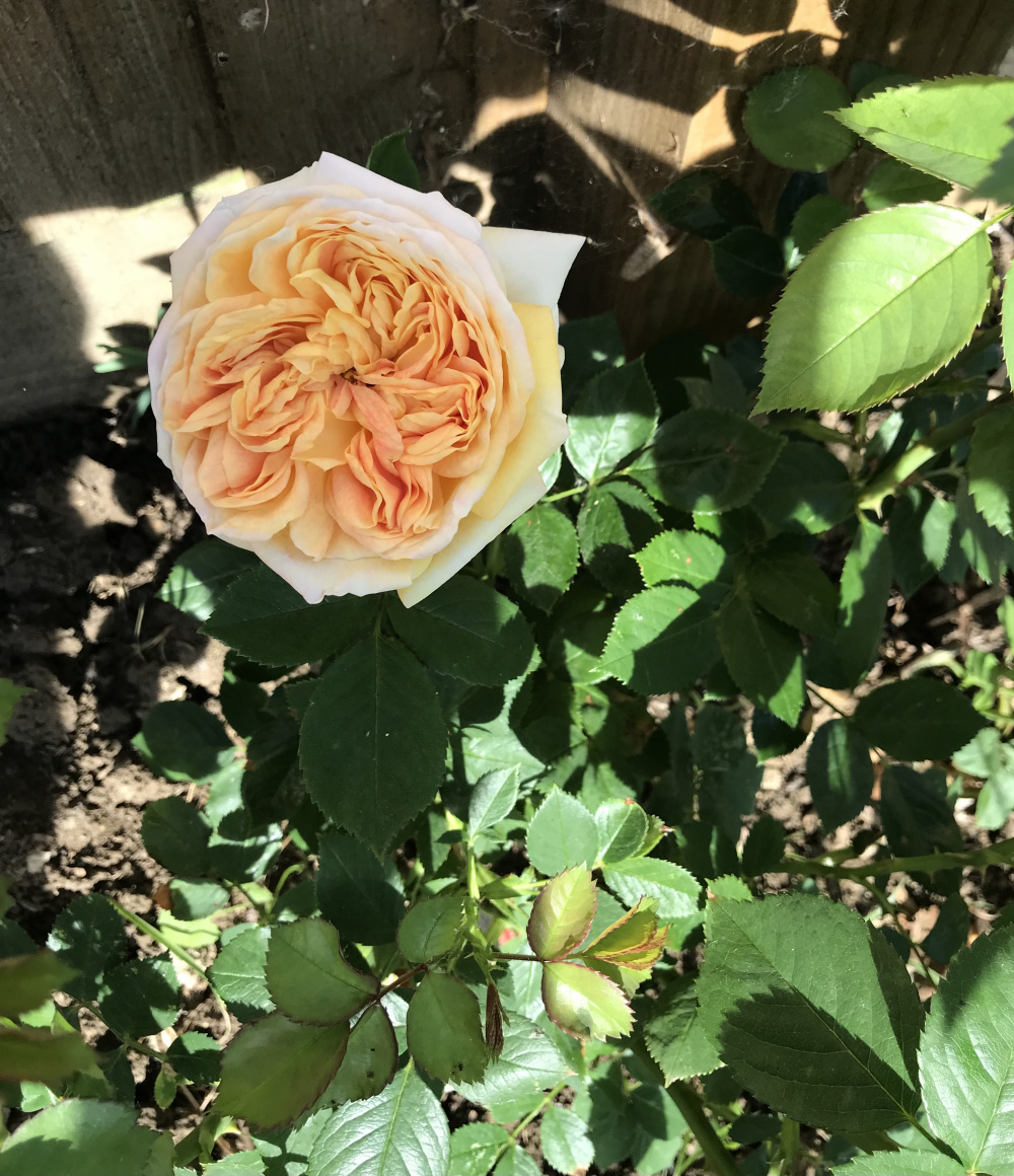 Golden Celebration, not hugely floriferous for me, spends too much energy putting out long octopus canes, gets blackspot, but it’s delicacy and fragrance make up for that: