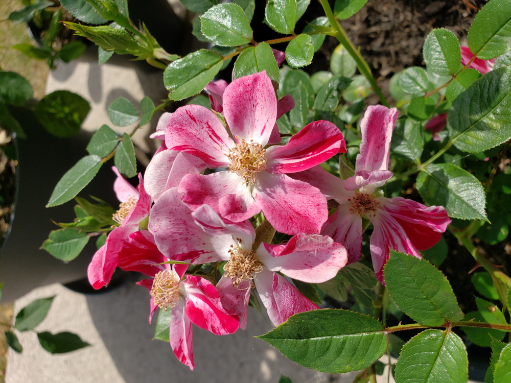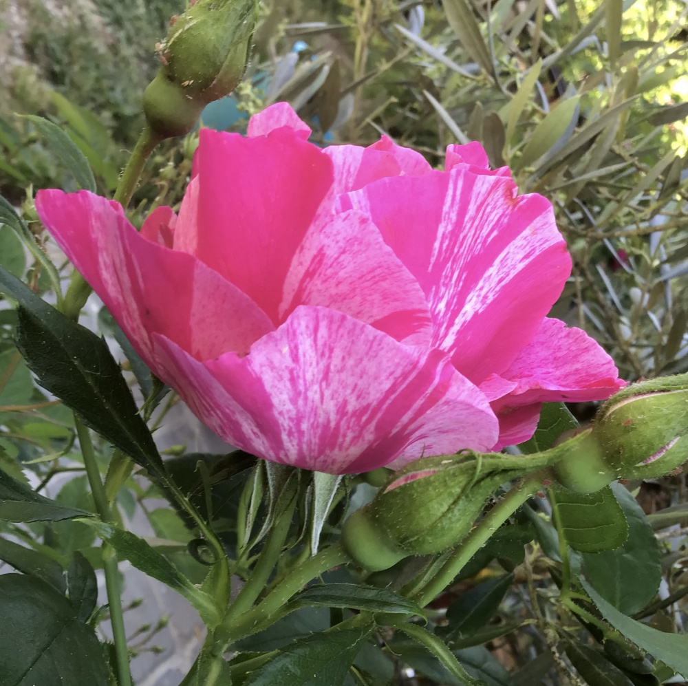 The only stripey one I've had in recent years.. 'Commandant Beaurepaire'.. probably related to Ferdinand Picard, just this one grows tall and ungainly, or wide spreading shrub.. Delicious scent though..