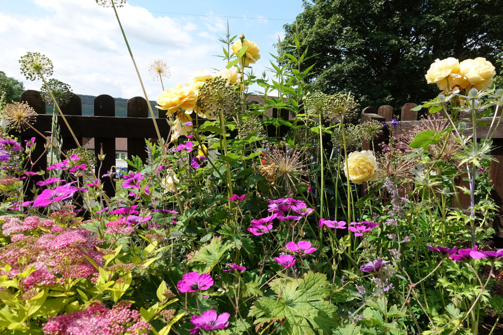 Fabulous roses and companions @Perki. I also have a love-hate relationship with Golden Celebration, more love really, but mine won’t stay compact, it throws out huge, long octopus canes and I totally underestimated the space it wants to occupy!