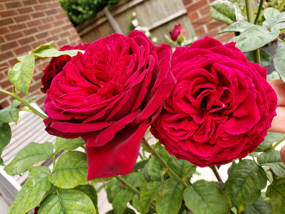 Mary Rose its the first rose I bought cost a tenner . Unfortunately its been evicted to the garage site which is opposite side of the beech hedge in the background. Eustace Vye bottom left . I got Gabriel Oak at the same time but I don't have anything to show for that one it been a poor rose , hopefully this year it will buck up. Best year ever last year for Paul Scarlet Generous Gardener possibly the best picture I've ever took of a rose, I won a photo comp on another garden forum with this beauty