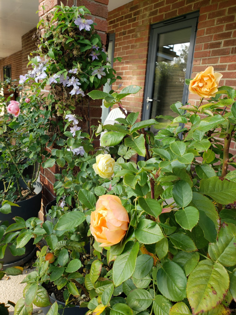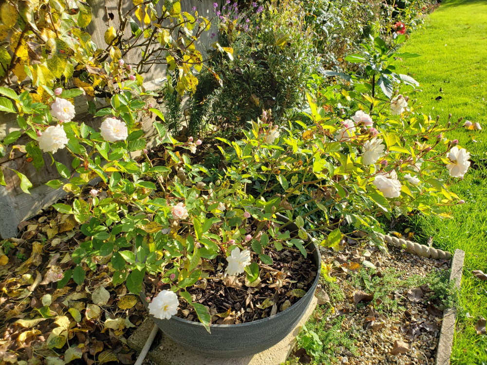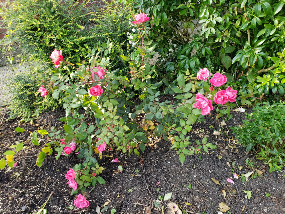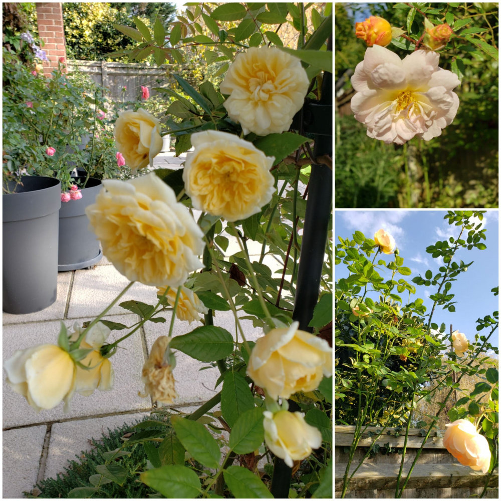 Knockout, much brighter colour than this picture suggests, it's highly visible far down the garden.Malvern Hills, GdeF and Wollerton OHI rarely show you Maie Pavie but it is a trooper in a potLook how orange ABFab (just spotted a hip) is next to Faustinia which has the prettiest yellow with a very strong aniseed scent. Boscobel just in viewGood luck with Strawberry Hill @Lizzie27, I can't see how it could disappoint you though. It took mine 3 seasons to reach 6ft and seems to bloom best for the later part of the season, it's still going really strong here with good health.