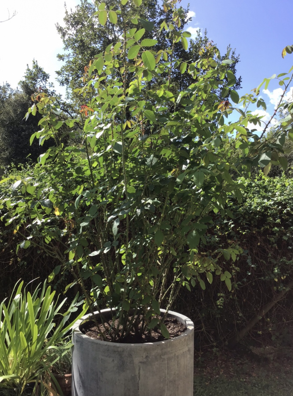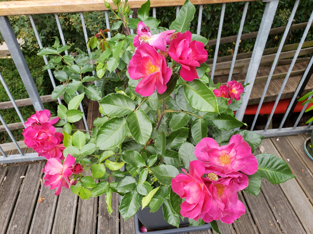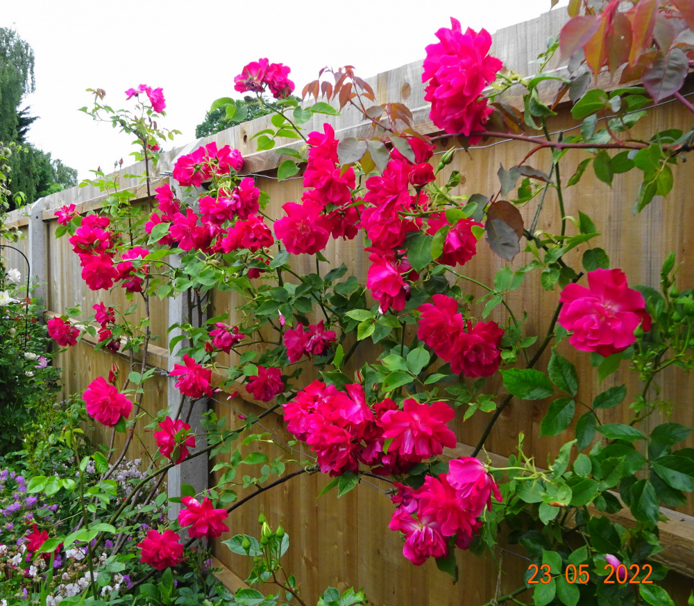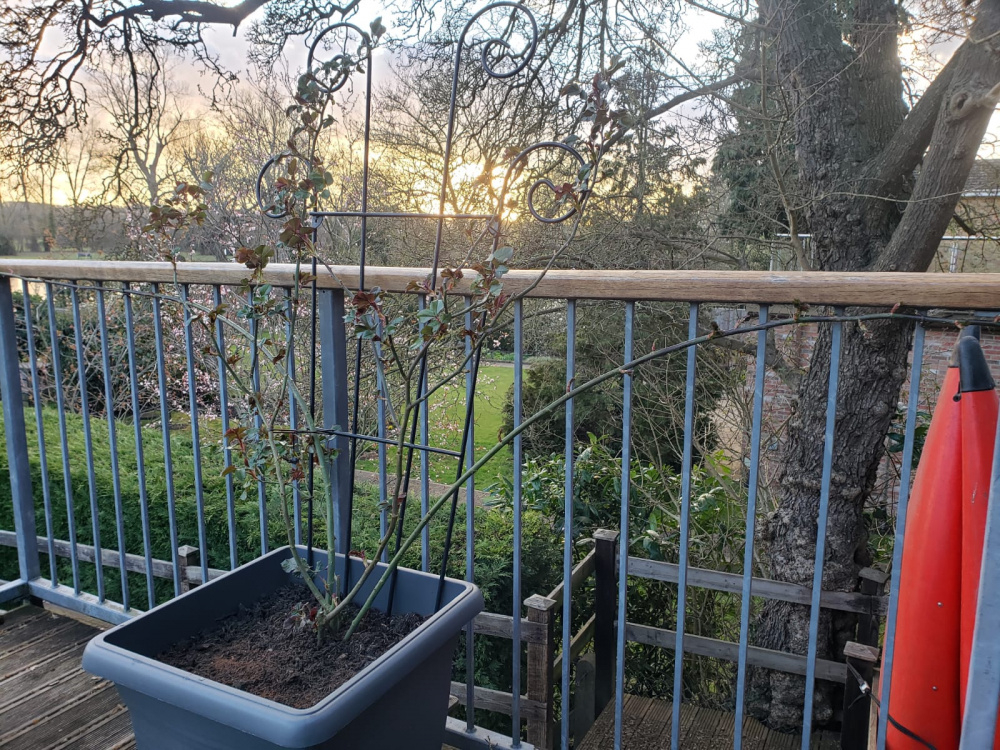 Lovely @Marlorena. I am really happy with Wild Rover, it is being trained on my balcony railings in a very large pot. It was the rose happiest up there in the heat of summer last year. August 2022Talking of ugly things in the photo I will move those canoes in the summer! I have considered putting half obelisks over fenceposts to grow clematis on .