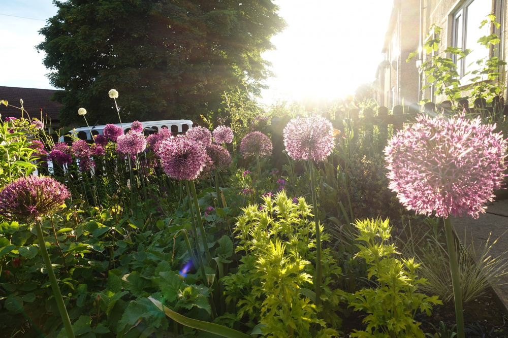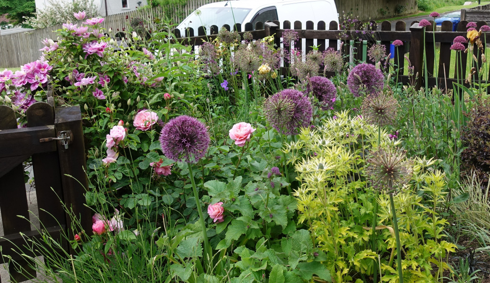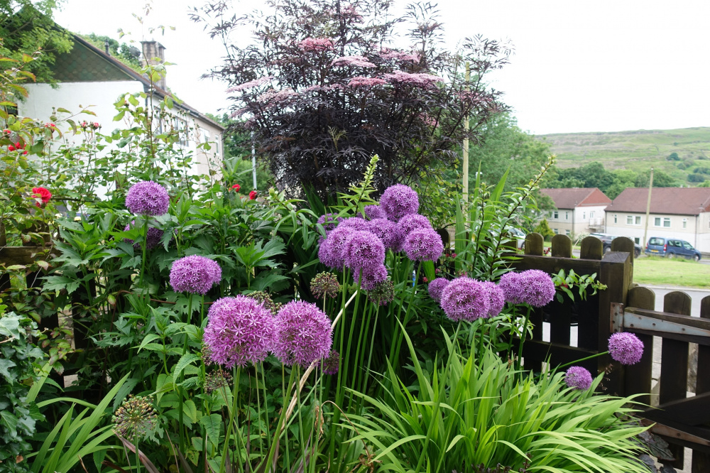 I think you are referring my Alliums I am glad they not dandelions I'd be having a fit having so many . I am crazy mad on alliums they are everywhere, they actually going over on that picture but I do leave them they still look good weeks/months later .