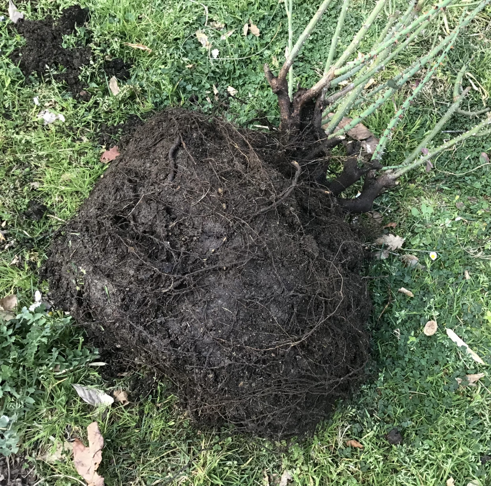 Even reduced to nearly half it’s size, the rootball weighed a tonne. Interestingly there was no tap root, which makes me wonder if it’s not on laxa: