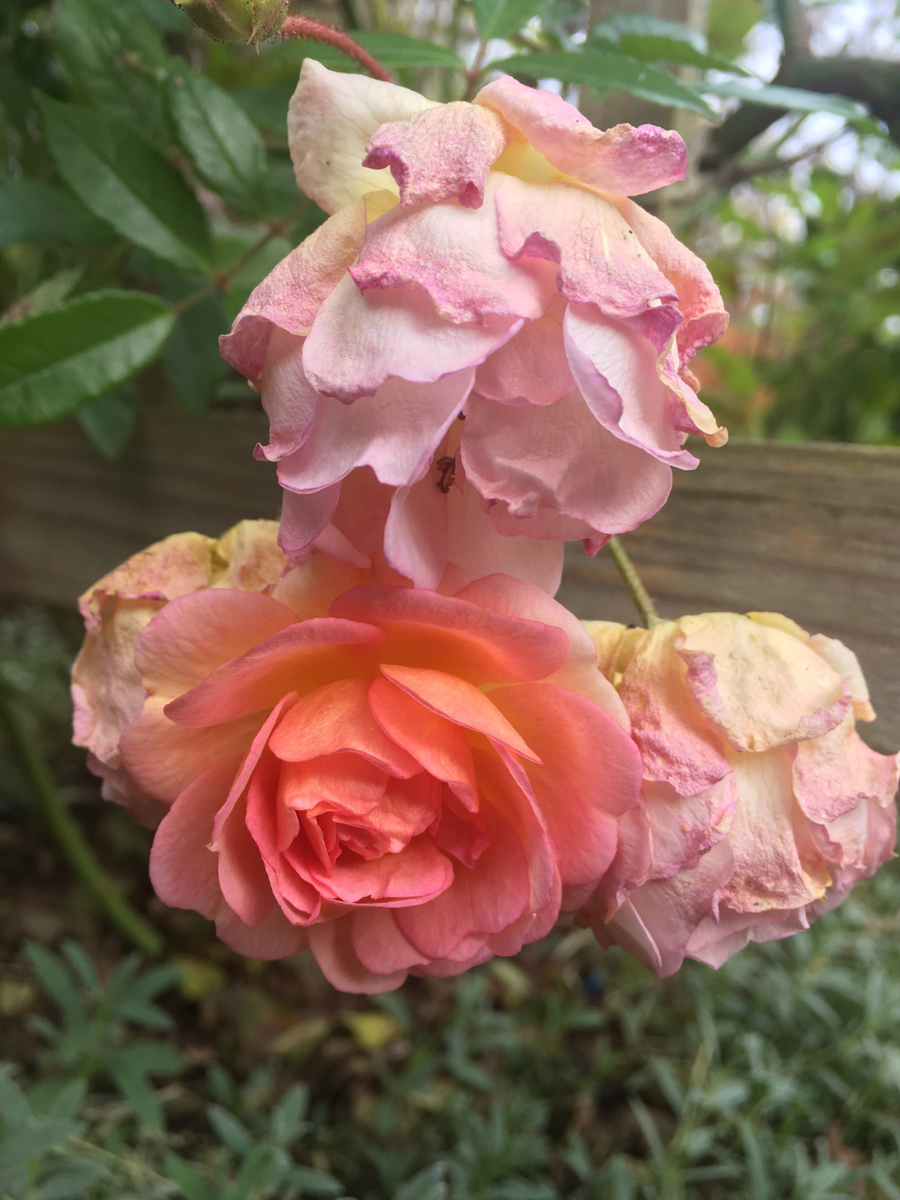 It's just remnants of roses for me now, MW, (blooms maybe just squeezed together a smidge for artistic interpretation) Roald Dahl, (unsqueezed), these 2 would look good planted together I reckon and the last few flowers on the last cluster of GdF and that'll be it for this year here I guess