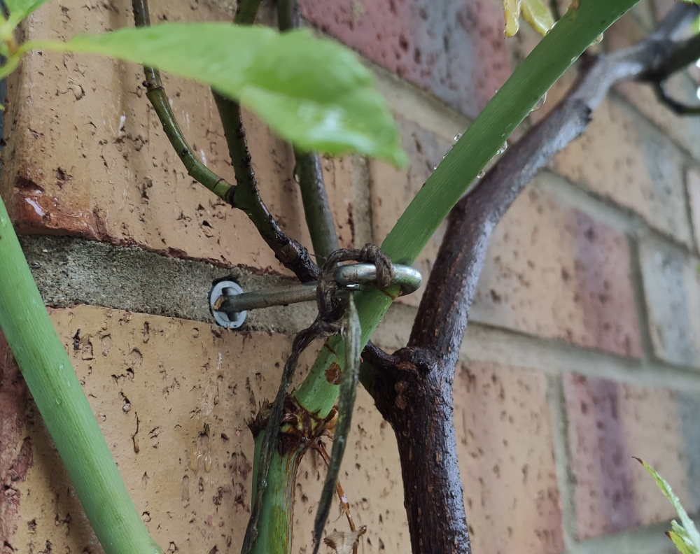 @owd potter re your MW, I would prune the middle canes back around a third and the floppy side ones by half, aiming for a roughly rounded shape. Usually it doesn’t matter where you cut, but for the side canes I would try and cut just above an upward-facing dormant bud (the knubbly bits) so that those buds will break and grow upwards. If a basal cane is really skinny and weak, better to prune it down to the ground and hope for new, stronger basals to replace it. MW does not produce basals as freely as some though, so you have to be disciplined and ruthless to prune out the weaklings. Canes will get stronger over time and better able to support the blooms, but nodding blooms are in much of the DA DNA and not much you can do about that!