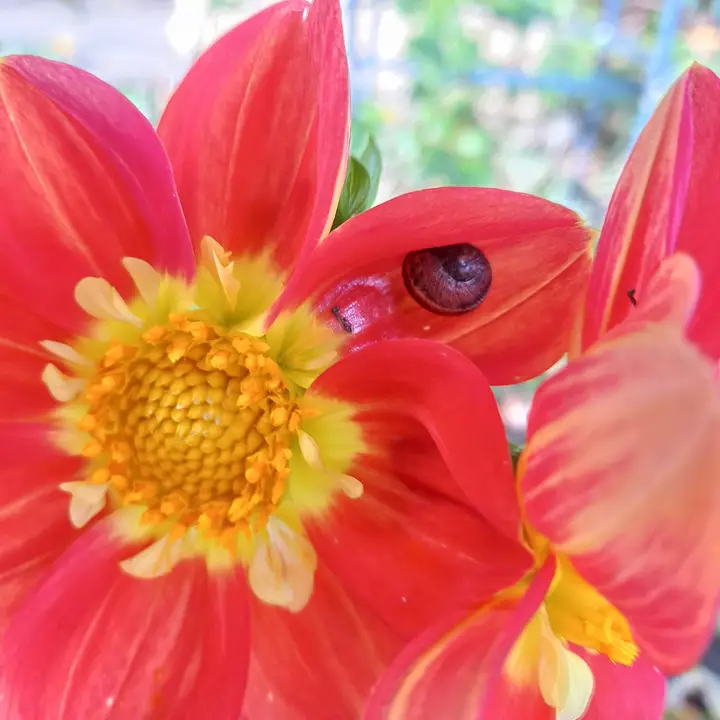 Spot the happy freeloader on my dahlia.