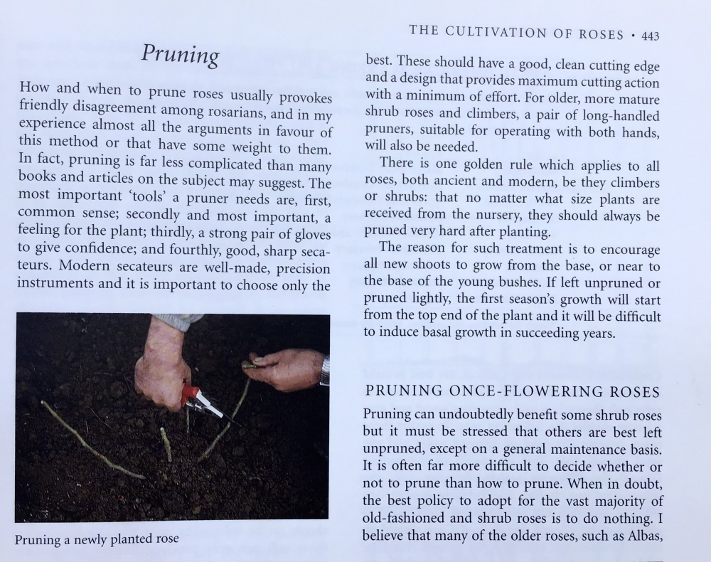 Hiya @Nollie, Yes that's it. The second paragraph there I think. The golden rule. "no matter what size of plants are received...prune very hard after receiving" It seems extreme to further hard prune a bare root plant that may be delivered with well pruned short canes anyway, but it is advice from a well respected source. So does anyone do so?