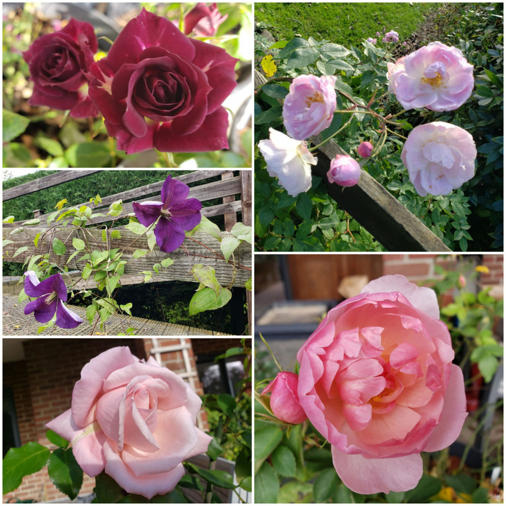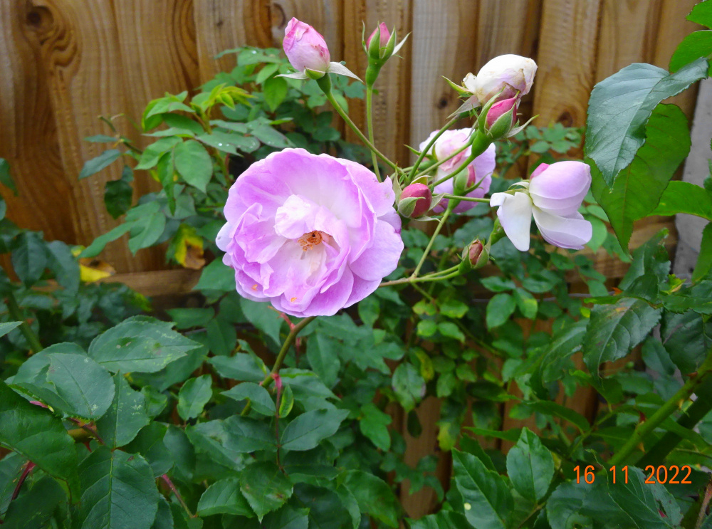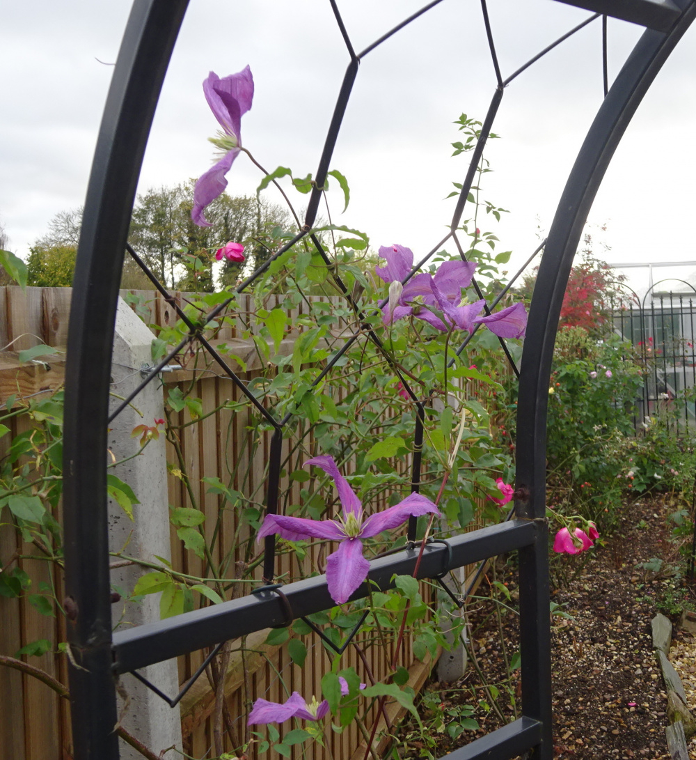 ..nice lilac colour on 'Blush Noisette'.. ..few late flowers Clematis 'Valour'. Hips.. .. we don't always have to deadhead everything, these will all continue to bloom regardless.. 'Scented Garden'.. 'Wilhelm'.. 'Tottering'..